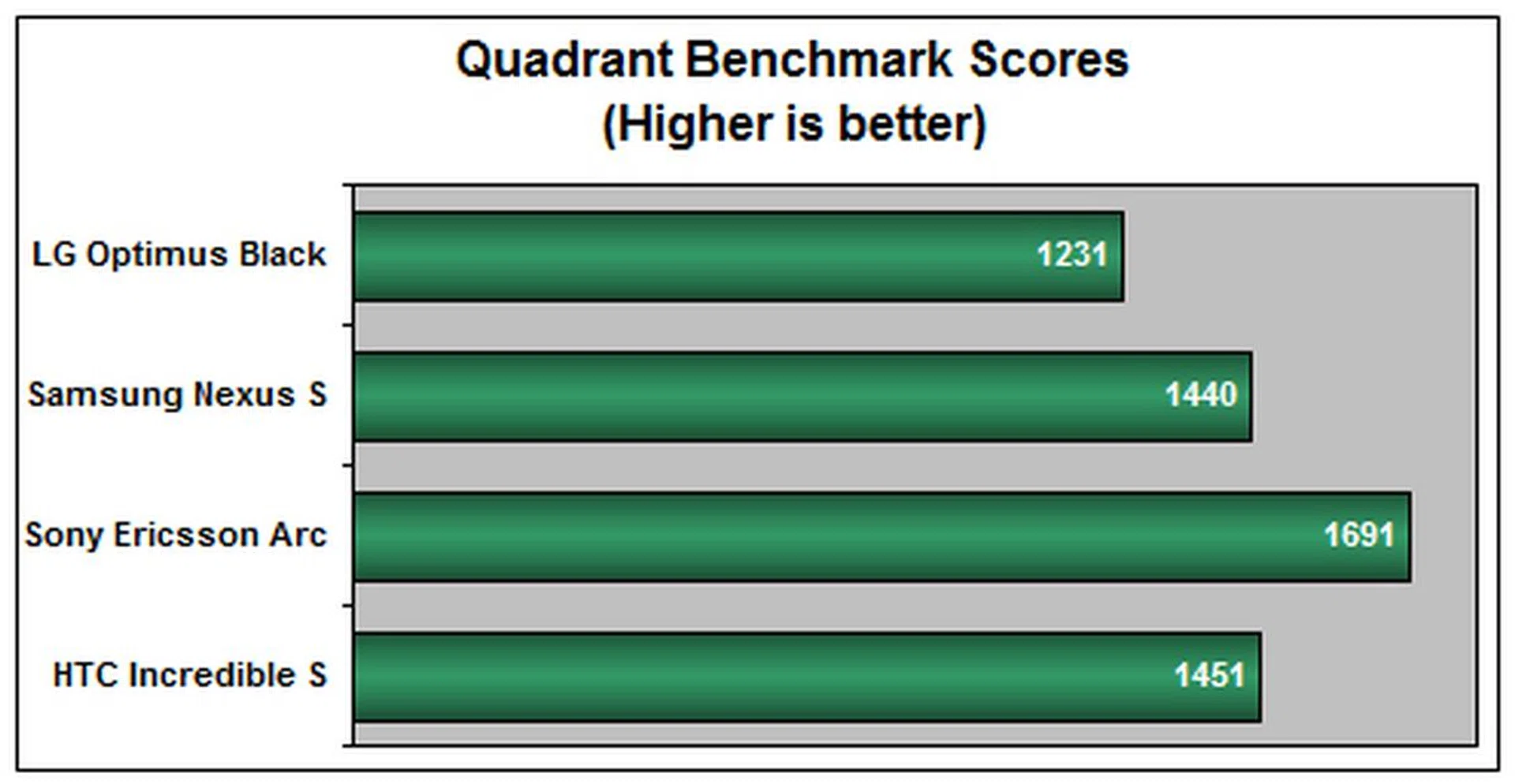 Nonetheless, single-core processors have performed their tasks just as well, from what we've seen on earlier devices such as the . To put its performance into numbers, we'll be subjecting the Optimus Black to our usual benchmark apps:
