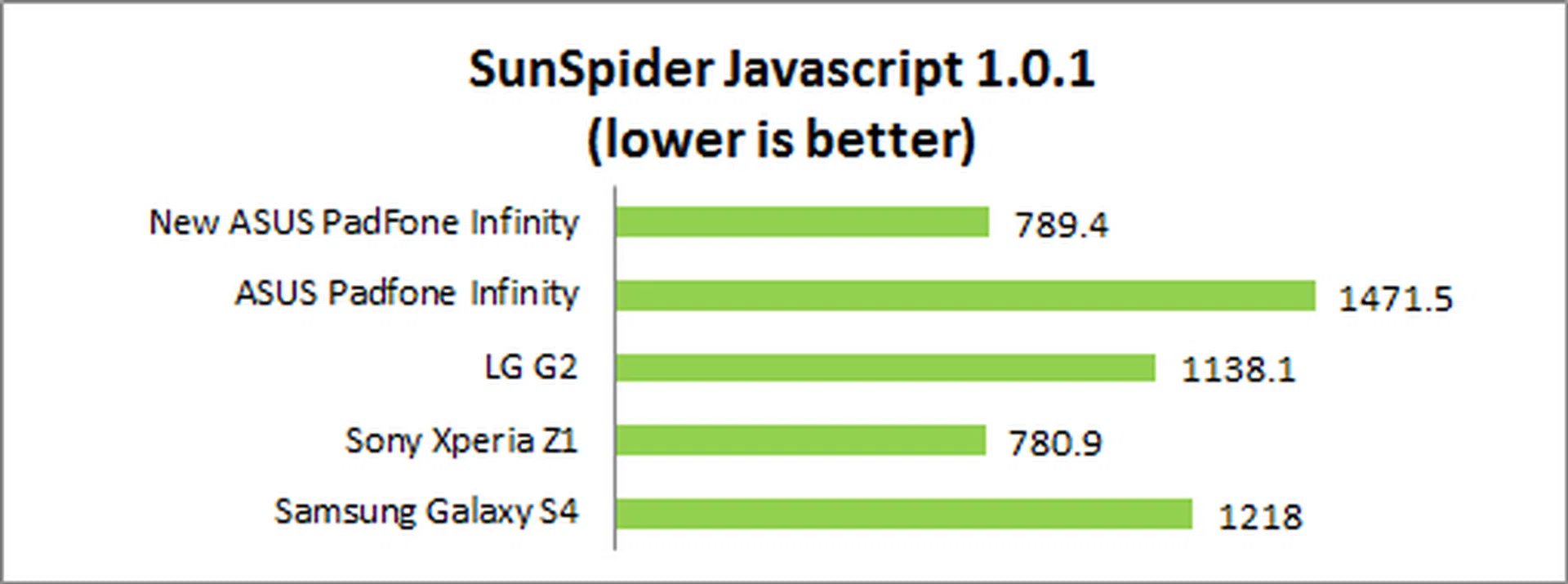 The new PadFone Infinity scored excellently on this benchmark, which was backed up by our own usage with the device, where both web browsing and UI navigation were fast and responsive.