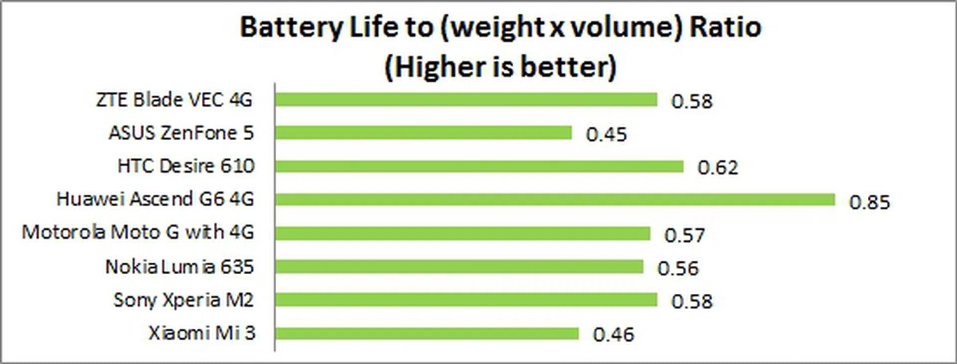 We measure the portability of a device by calculating its battery life to (weight x volume) ratio. Thanks to its decent battery life, slim and lightweight form factor, the Blade ZEC 4G was able to keep up with the other phones with smaller footprints, which is commendable for a device of its class.