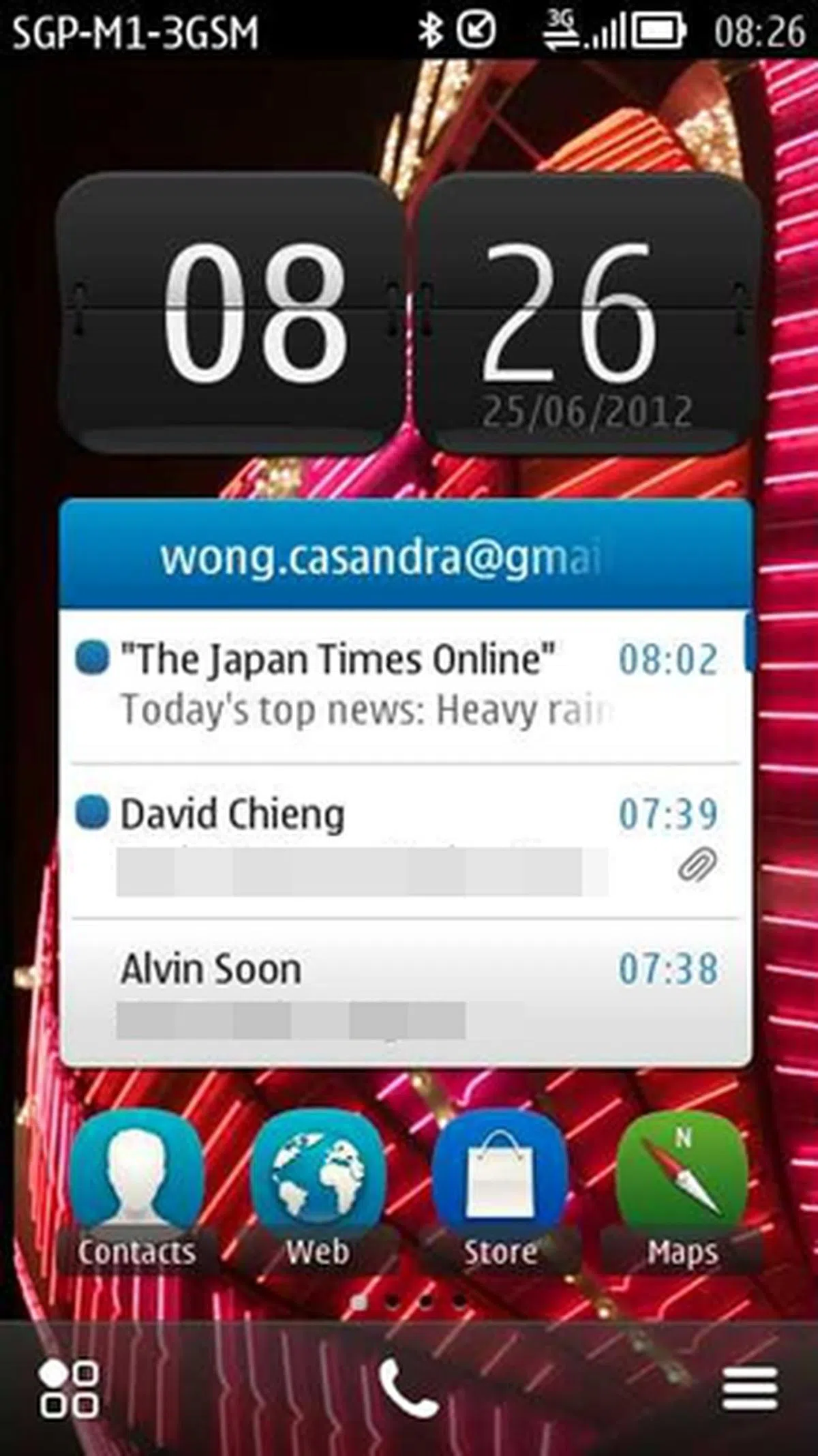 Android users will be familiar with the design of the drop-down notifications bar on Symbian Belle. Simply drag down from the top to get a glimpse of the activity on your phone as well as access important phone settings.