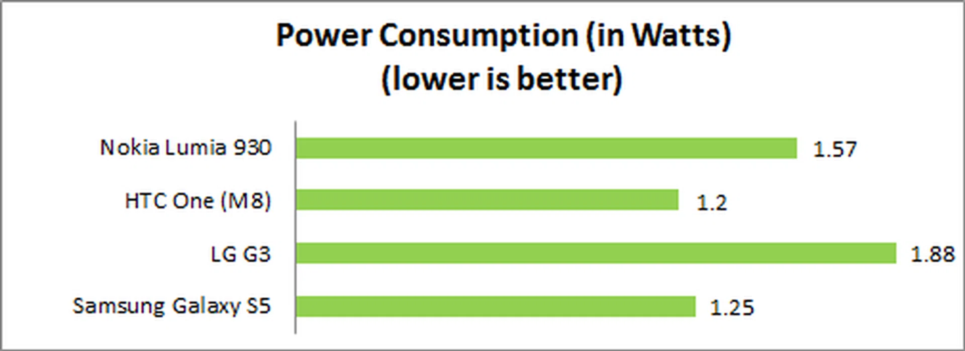 As expected, the rather small capacity 2420mAh battery of the Lumia 930 didn't last very long in our video looping test, dying just before the six-hour mark. Not only that, power draw was also calculated to be higher than expected, and it's not far off from LG's G3 and its QHD display.