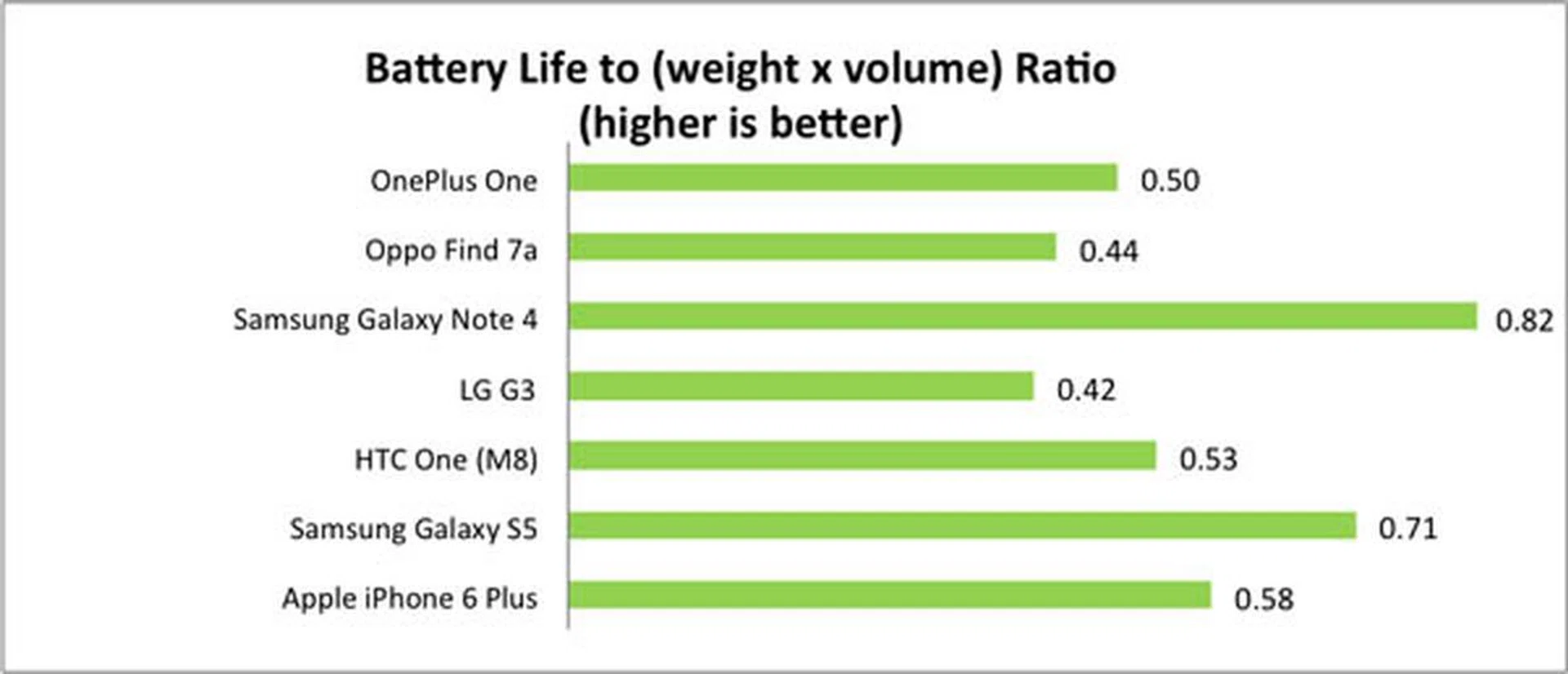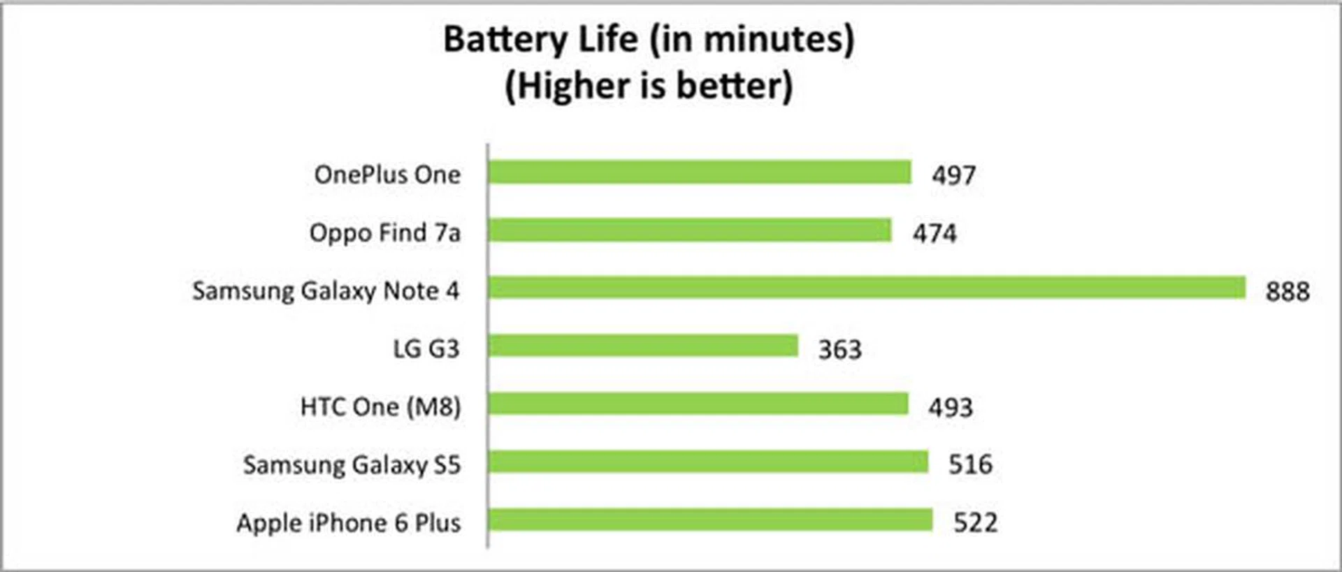 With these test parameters, the OnePlus One’s battery life lasted over 8 hours, and is comparable to that of most flagship phones. It even trumps LG G3 easily, though one should note that the OnePlus One has far fewer pixels to light than the G3's QHD resolution screen. Indeed, when compared to the phones of similar specs, the battery life is within the expected range of 480 to 520 minutes. Its resulting Portability ratio isn't class leading, but it's decent for its class.