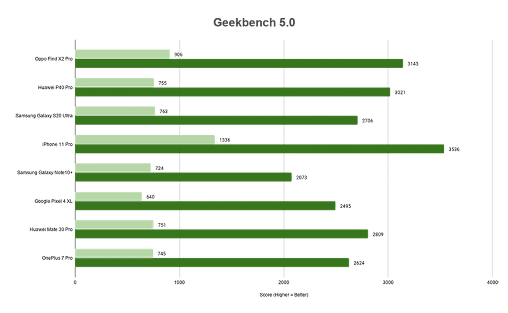 Among non-iOS smartphones, the Find X2 Pro beats all the others at both single-core and multi-core performance. On paper, it will be faster than any other no matter if your phone is idling and running due processes in the background, or if you’re running a processing-heavy app.