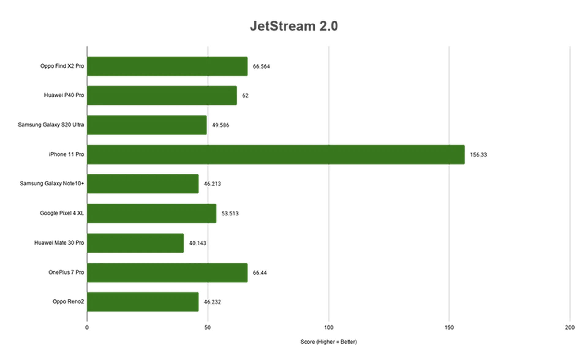 To benchmark the phone’s web browsing performance, we used the JetStream 2 benchmark test on the Google Chrome web browser app. The test measures a phone’s capabilities in handling a variety of advanced workloads and executing codes. JetStream 2 is an updated version of older benchmarks, such as the first JetStream and SunSpider.