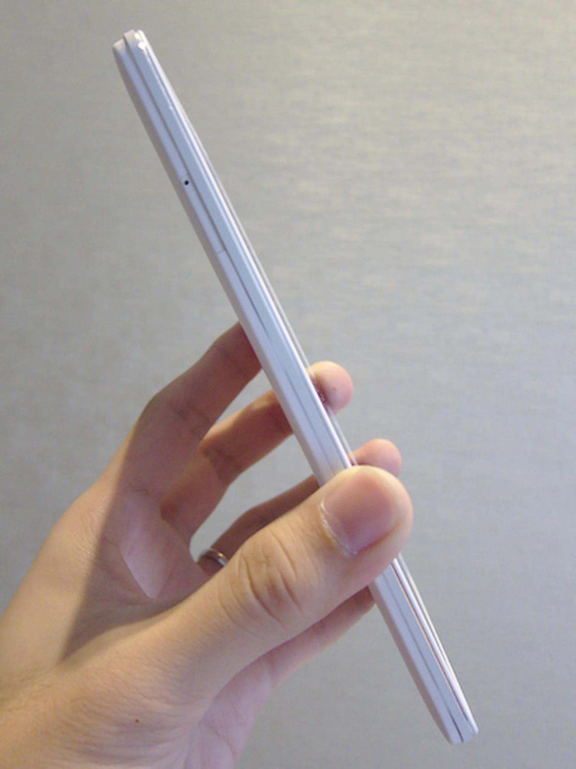The Oppo N1 is a huge phone, or to be more accurate, a "phablet". The phone sports a matte white, polycarbonate (plastic) unibody exterior, with chrome-colored accents lining the perimeter that actually is part of the phone's metal aluminium alloy inner frame.