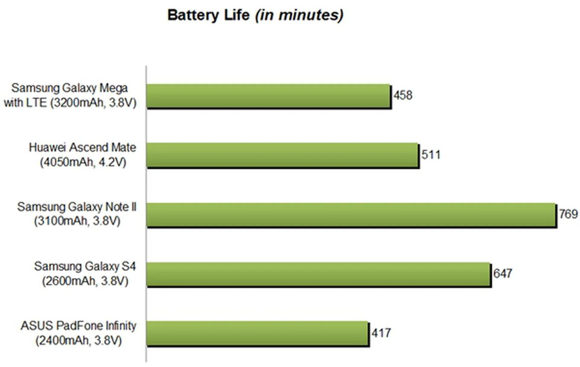 The Galaxy Mega managed a battery uptime of 7 hours and 38 minutes, which is an impressive feat for a device with a 6.3-inch display. Although it lasted an hour lesser than the Ascend Mate, it is important to note that the Ascend Mate has a slightly smaller display at 6.1-inch and is backed by a huge 4,050mAh battery. In comparison, the Galaxy Mega has a 3,200mAh battery.