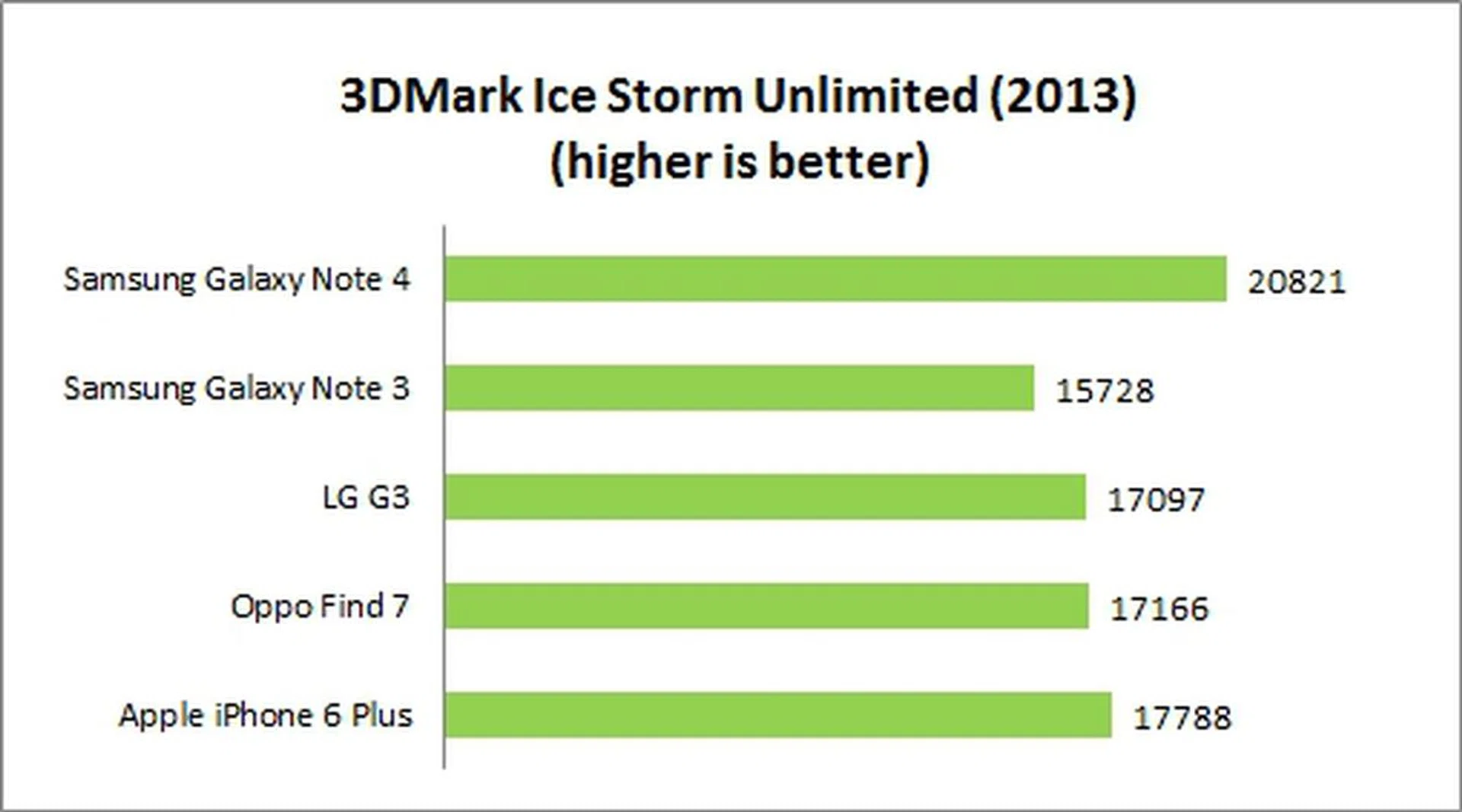 Since all the recent flagship smartphones max out the scores for the Standard and Extreme tests, we will only be looking at the scores for Ice Storm Unlimited run. The Note 4 clinched the top spot in the benchmark with a score of 20,821, which is a healthy lead over the G3, Find 7 and the iPhone 6 Plus.