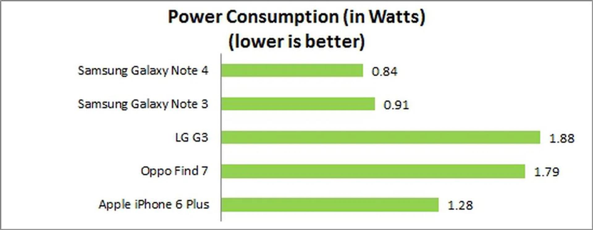 Its record breaking battery mileage can be attributed to its lower power consumption of just 0.84 watts, which is in turn attributed to Samsung's extremely efficient AMOLED display. Since the other phones utilize LCD panels, their power consumption in use were much higher.