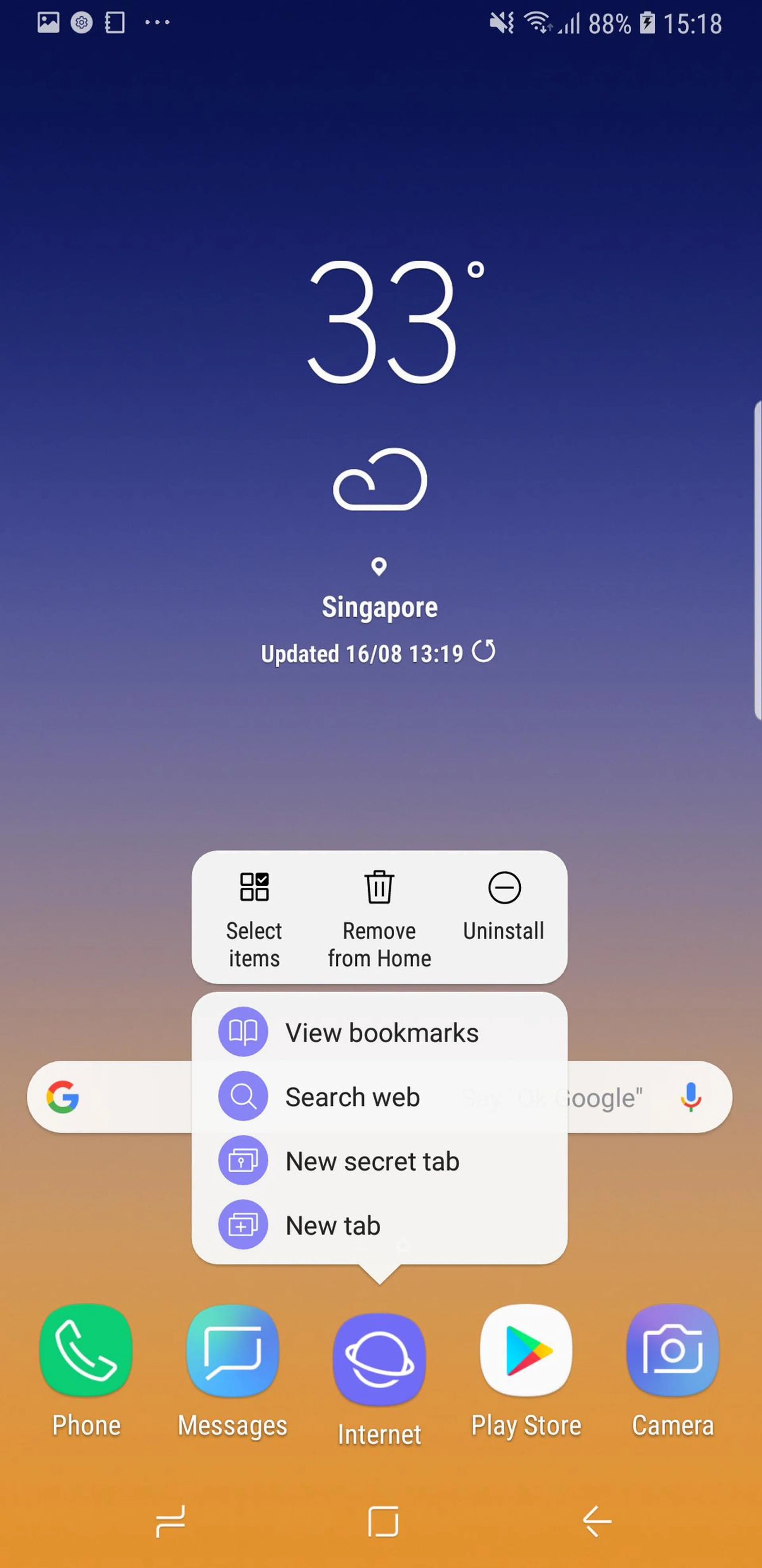 You can now also customize apps on your home screen with App Shortcuts, which is quite similar to how 3D Touch works on the iPhone. Each app is allowed up to five shortcuts, accessible by long-pressing on the icon. So for example, if you want your camera app to load straight into Selfie mode, you can long tap it, then select Selfie, or you can setup Twitter to launch directly into composing a new tweet, direct message, or search.