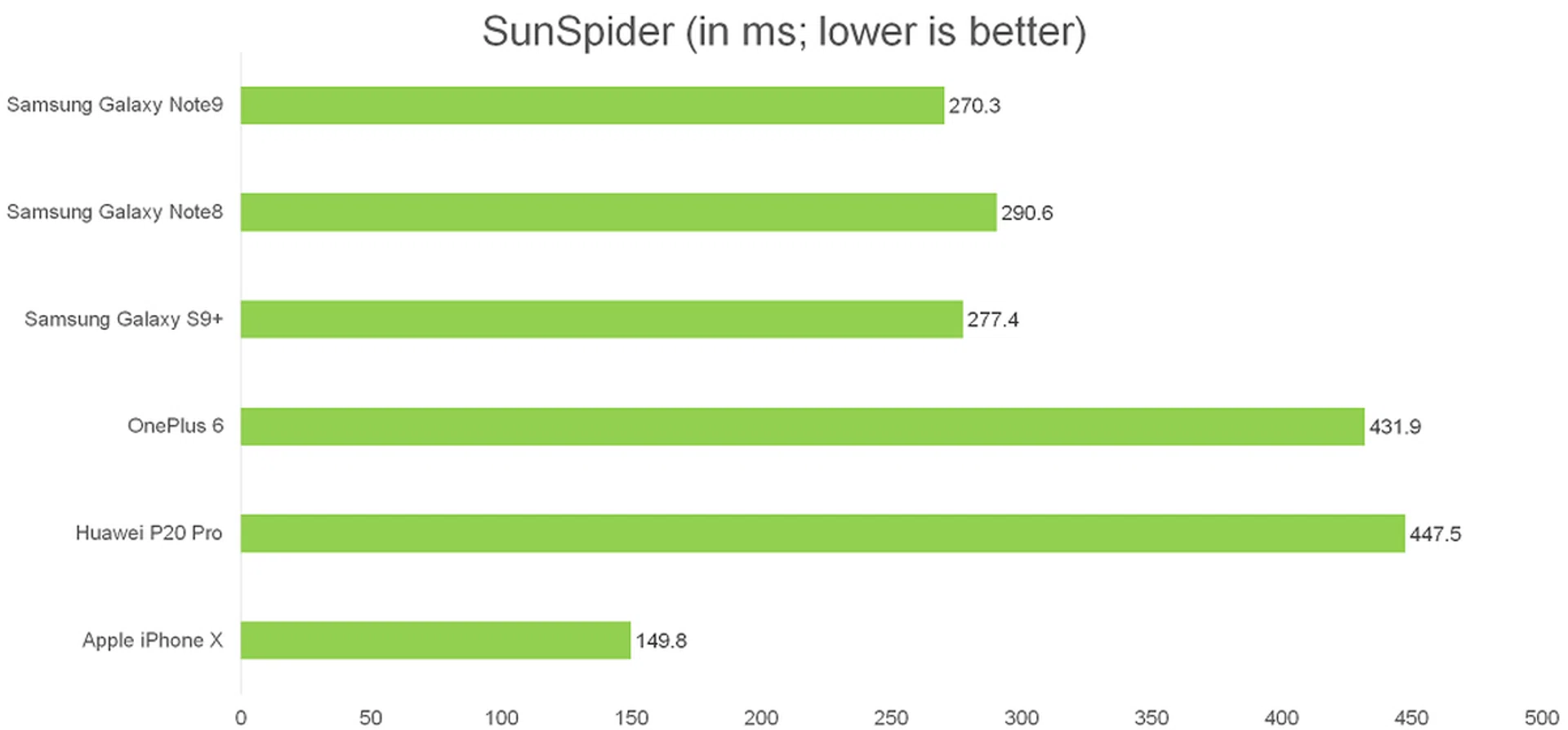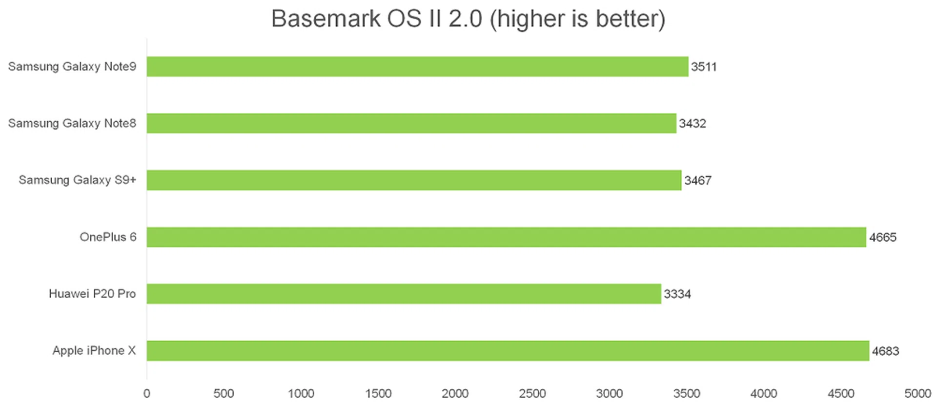 Samsung phones always perform well on this benchmark and the Note9 is no different, losing only to Apple's iPhone X. However, in actual browsing performance, the Note9 feels just as fast and responsive as the X.