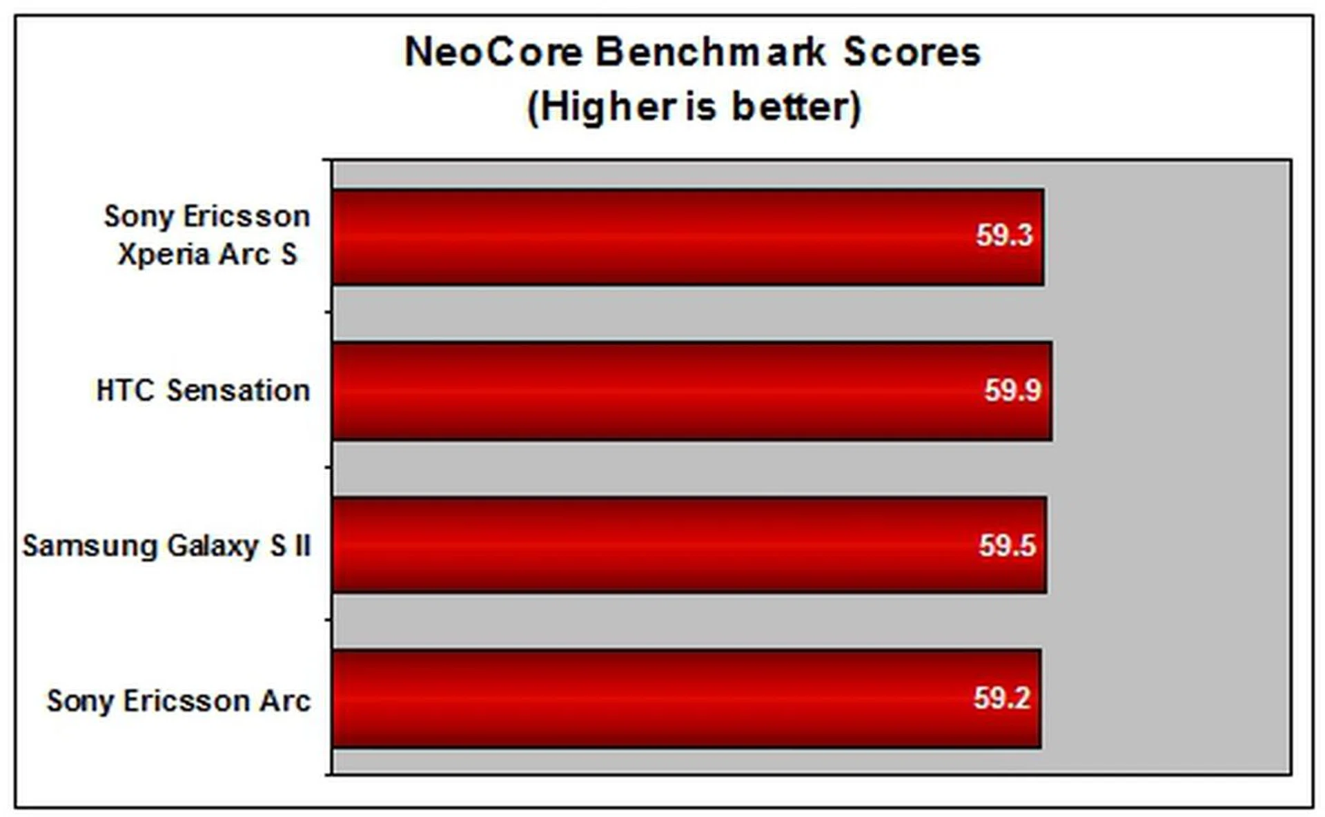 However, when it comes to the NeoCore scores, all devices gave remarkably similar scores. With an FPS score of 59.3, the device is almost neck and neck with the dual-core phones like the Samsung Galaxy S II and HTC Sensation. while that may sound like a testament to its capable performance, you can't entirely rely on benchmark scores to gauge a device's performance, especially for a casual consumer device.