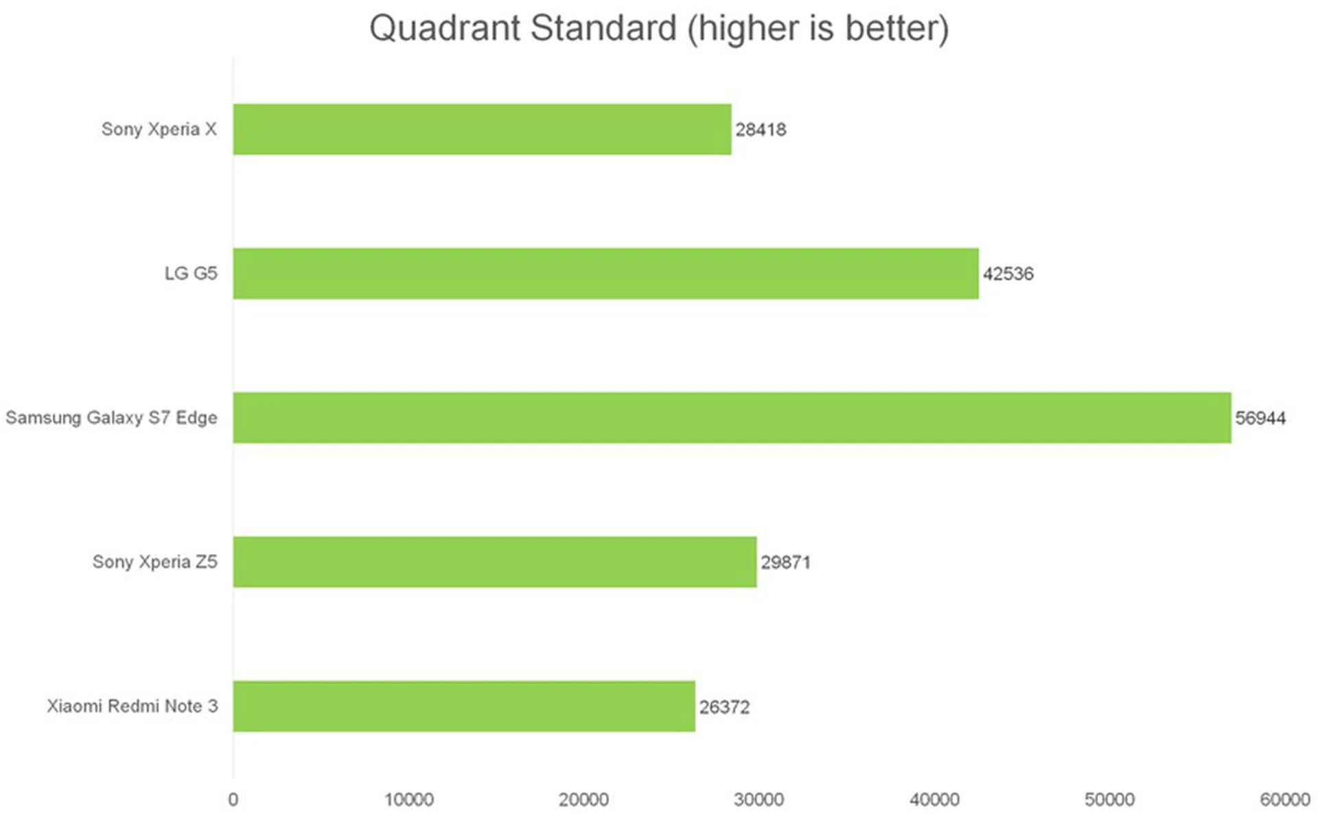 Quadrant benchmarks a device’s CPU, I/O, and GPU performance. It’s no surprise that the Xperia X would pale in comparison to the LG or Samsung flagships listed here, but it was a little disappointing to learn that the new Sony smartphone can’t outperform the Z5.