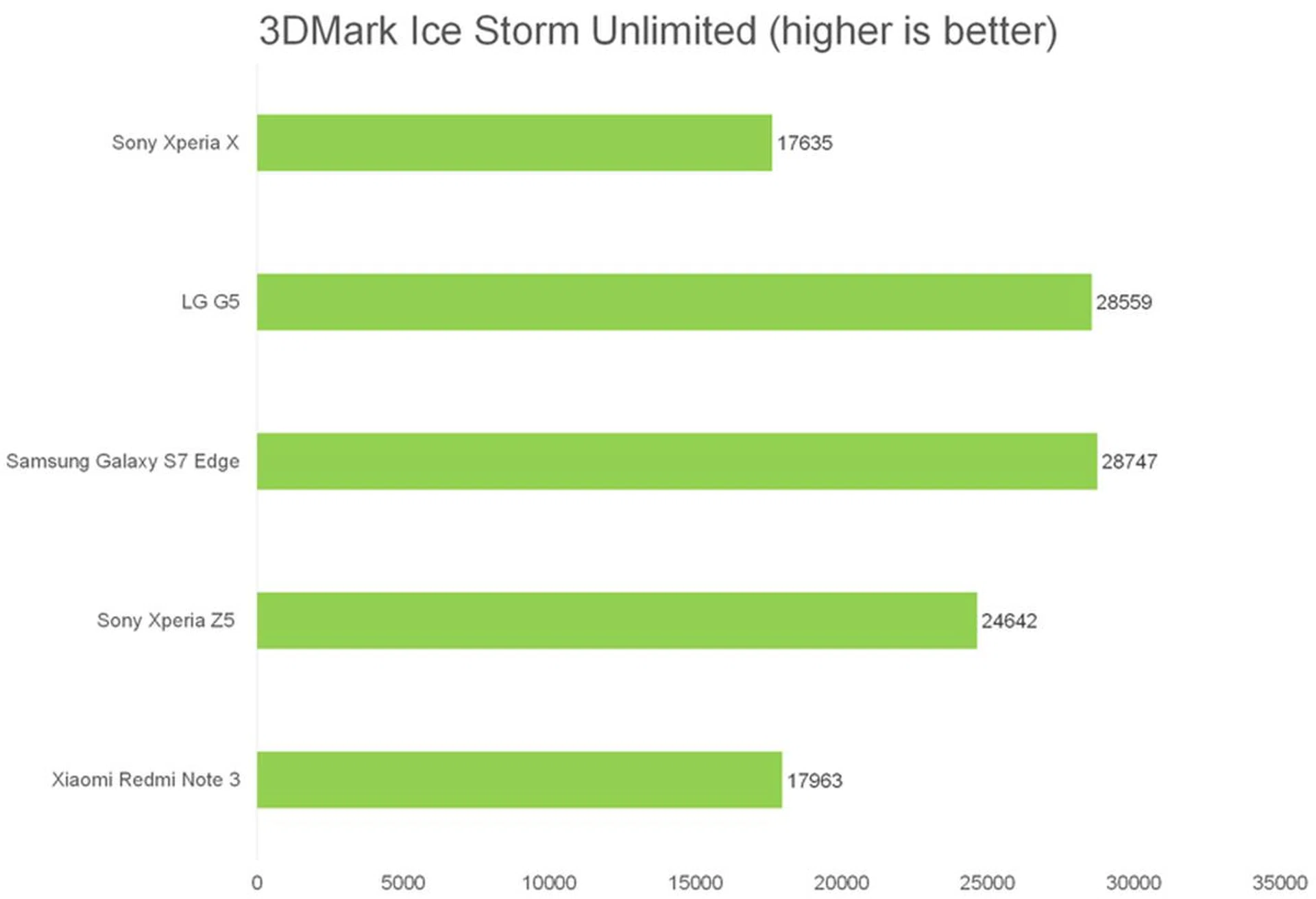 3DMark’s Ice Storm Unlimited test uses a mix of graphics and physics tests to measure hardware performance. The first test measures the GPU’s ability to process lots of vertices, while the second does the same thing with lots of pixels and post-processing effects. Finally, the physics test switches the load to the CPU to test its ability to process physics simulations, while keeping GPU load low. We expected these results, going by how the Xperia X fared in earlier tests.