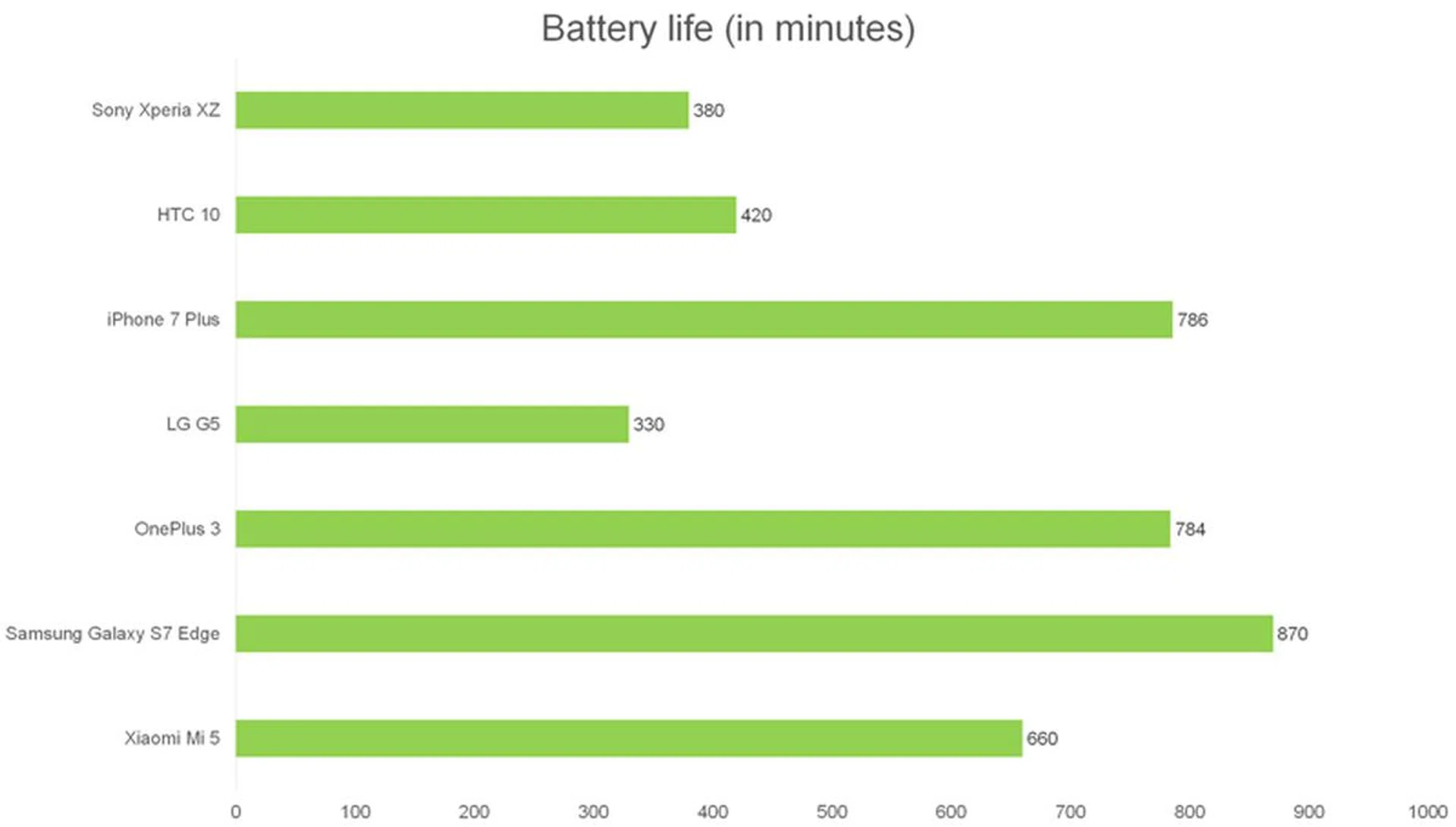 Despite its decent battery capacity and flagship processor, the Xperia XZ is quite the battery hog. From our tests, the phone lasted a mere 380 minutes, putting it on the lower end of other flagship phones. At a glance, only the LG G5 had a lower total. Our day-to-day usage was a different story, as the Xperia XZ did not bottom out with six hours of typical use. Based on our power consumption calculation, the XZ's battery drain is less efficient than the HTC 10’s, but more efficient than the LG G5’s - though they all pale in comparison to the Galaxy S7 Edge.