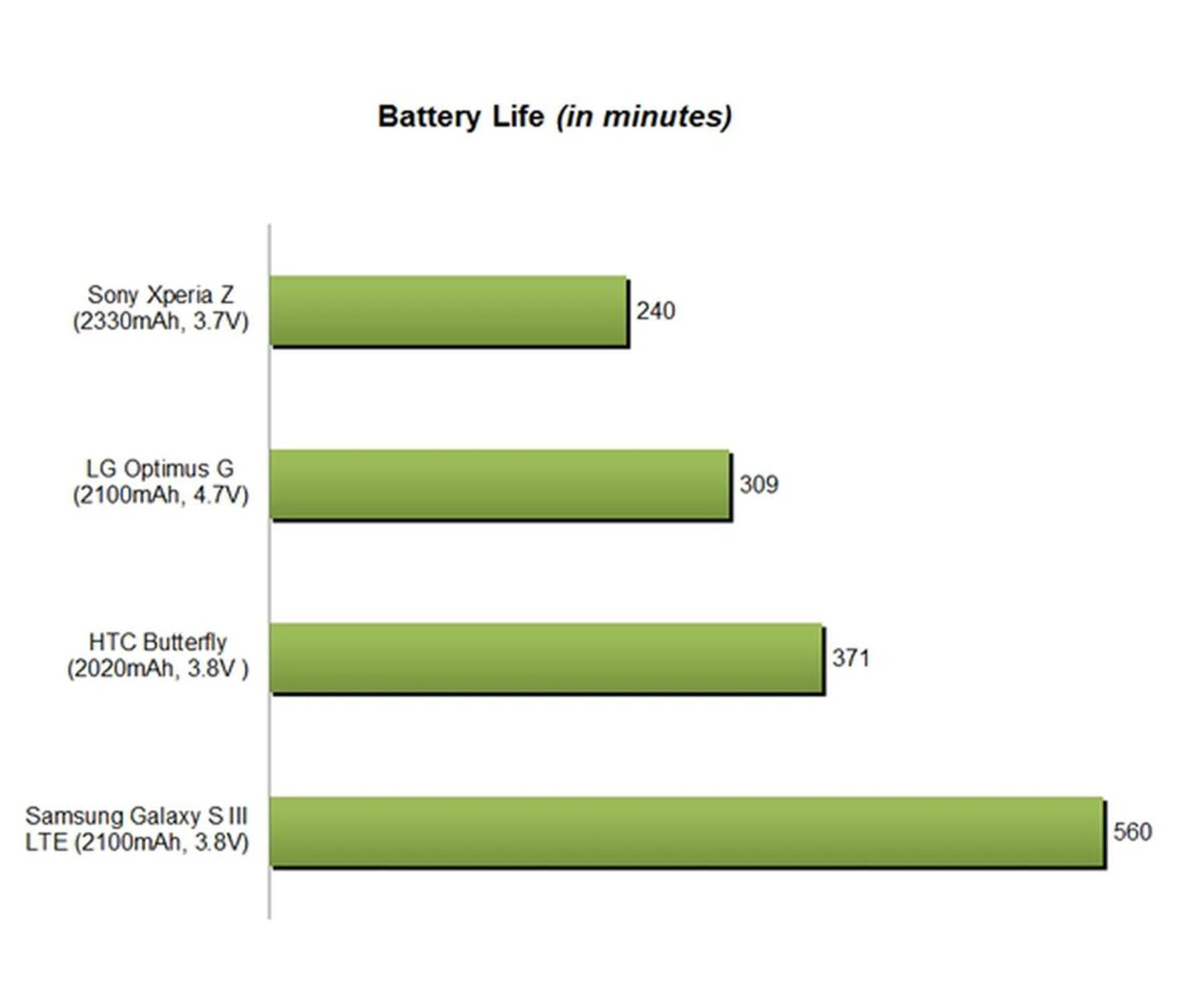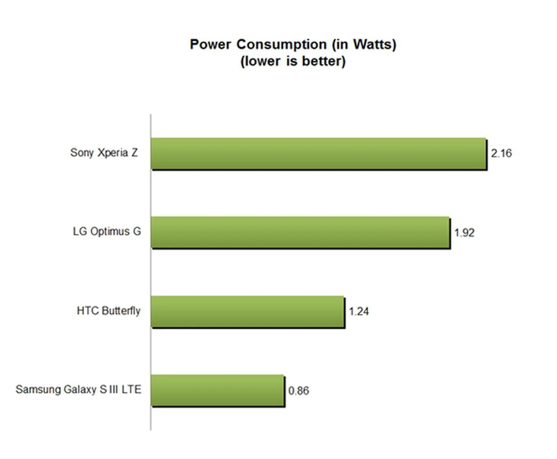 Due to its physical dimensions and weight, it is the heaviest out of the four. As such, the Xperia Z ended up last in the Portability Index where each device is assessed on its ability to balance battery mileage with its size and weight. Once again, both LG Optimus G and the HTC Butterfly ousted the Sony Xperia Z.