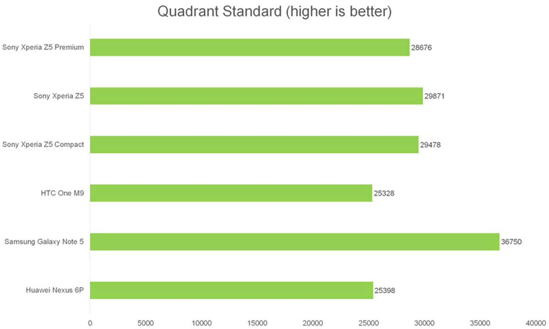 Quadrant benchmarks a device’s CPU, I/O, and GPU performance. We encountered some minor issues with the Z5’s Quadrant benchmark as it occasionally reported scores that were higher than the Note 5’s (which is generally regarded as one of the most powerful smartphones among the 2015 flock). Numerous tests and cross-references brought us a more realistic score. Good numbers aside, there’s a mild delay when you open some apps. Otherwise, the Z5 phones are certainly great to use on a day-to-day basis.