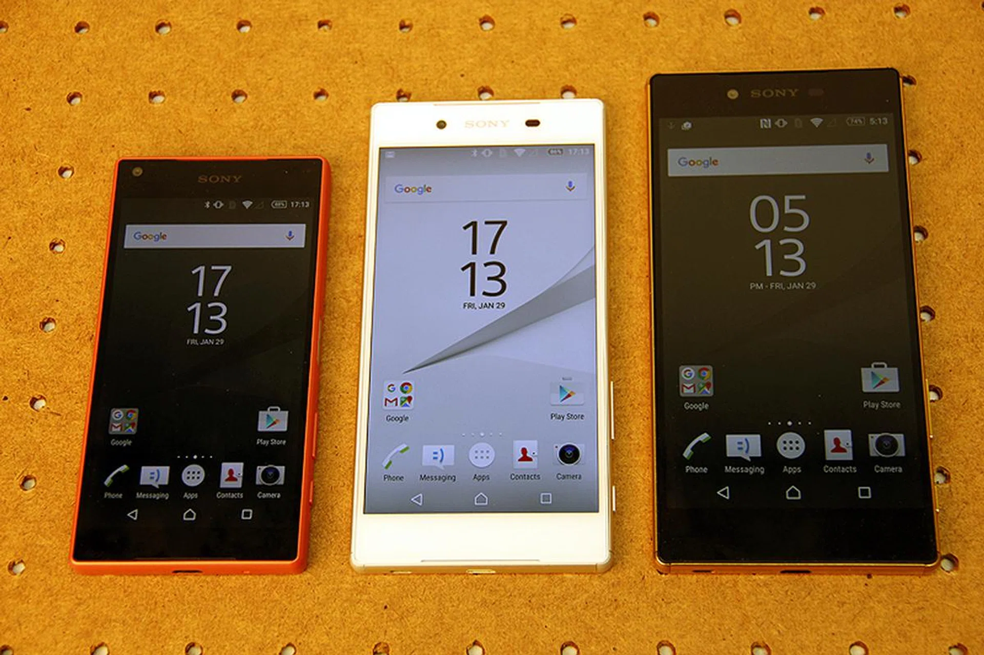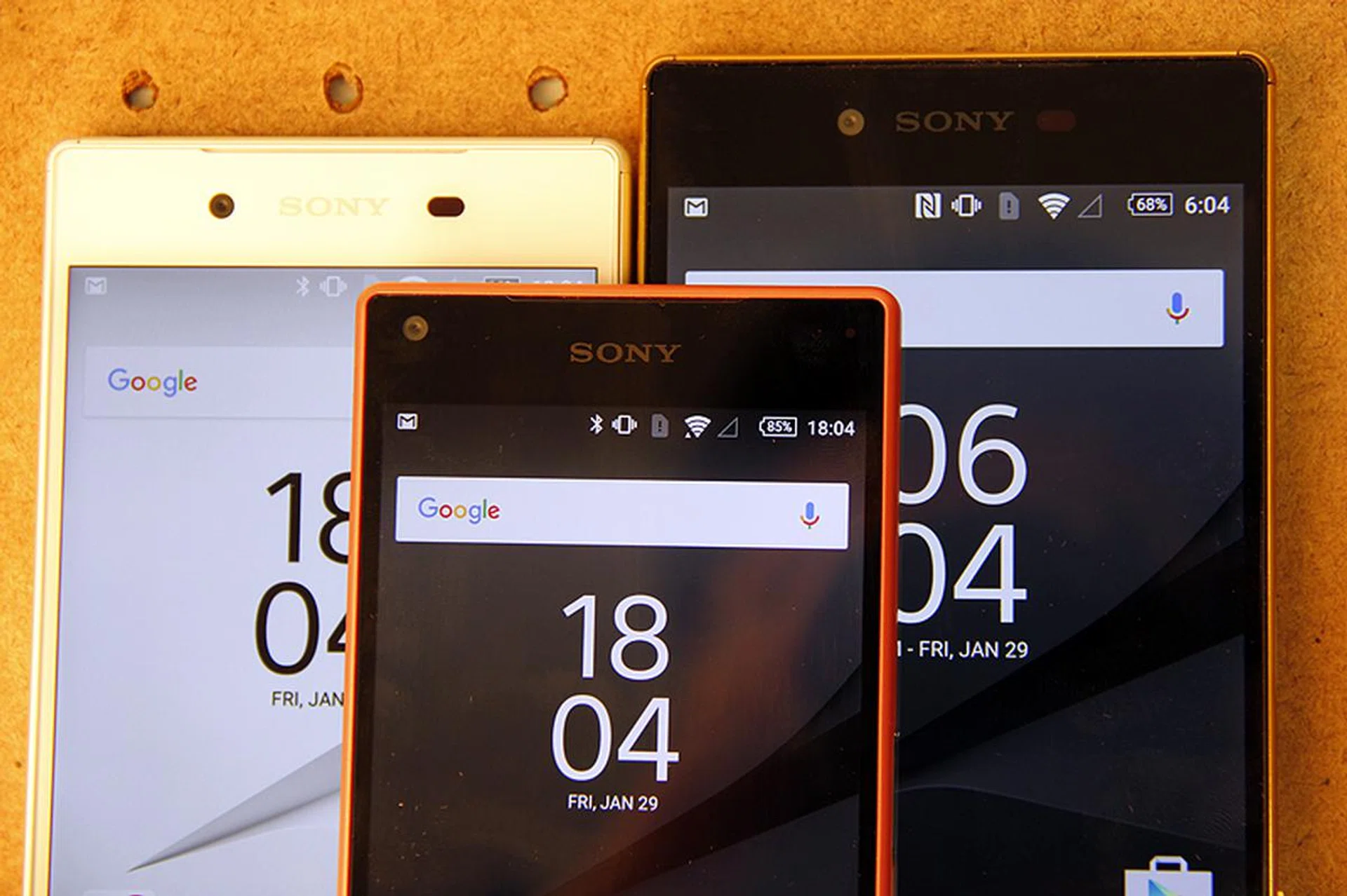 Sony Xperia Z5 Premium (left), Sony Xperia Z5 (right), Sony Xperia Z5 Compact (top).