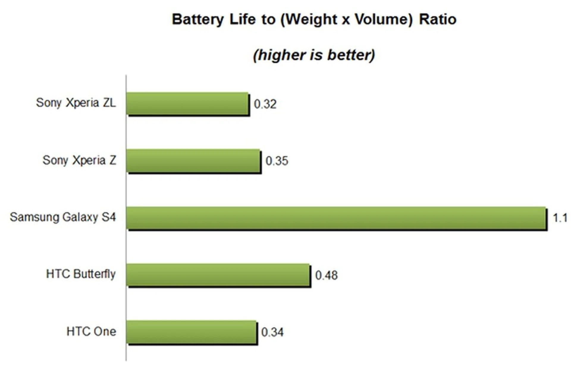 As it is the heaviest and thickest device of the five phones, the Xperia ZL obviously fared the worst in our Portability Index where each device is assessed on its ability to balance battery mileage. with its size and portability. So even though the Xperia ZL is more compact and lasts longer, its thicker profile and slightly more heft pulled it back somewhat. The irony is that even without the dust and water resistive properties, a plastic back instead of an extra glass panel and a more compact size, the Sony Xperia ZL was still thicker and heavier than the flagship Xperia Z.