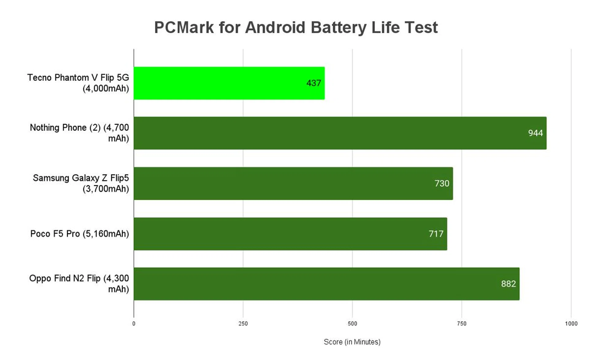 Remember, the test cuts off at 20% battery, so the Tecno Phantom V Flip can definitely last a little longer. But we think seven hours isn’t enough for clamshell users, since its core appeal lies in its imaging versatility (a battery drainer) while doing everything a phone should do. You’ll definitely need a powerbank to have a full day out with this device.
