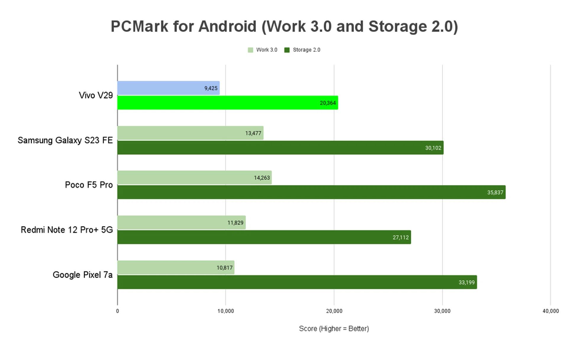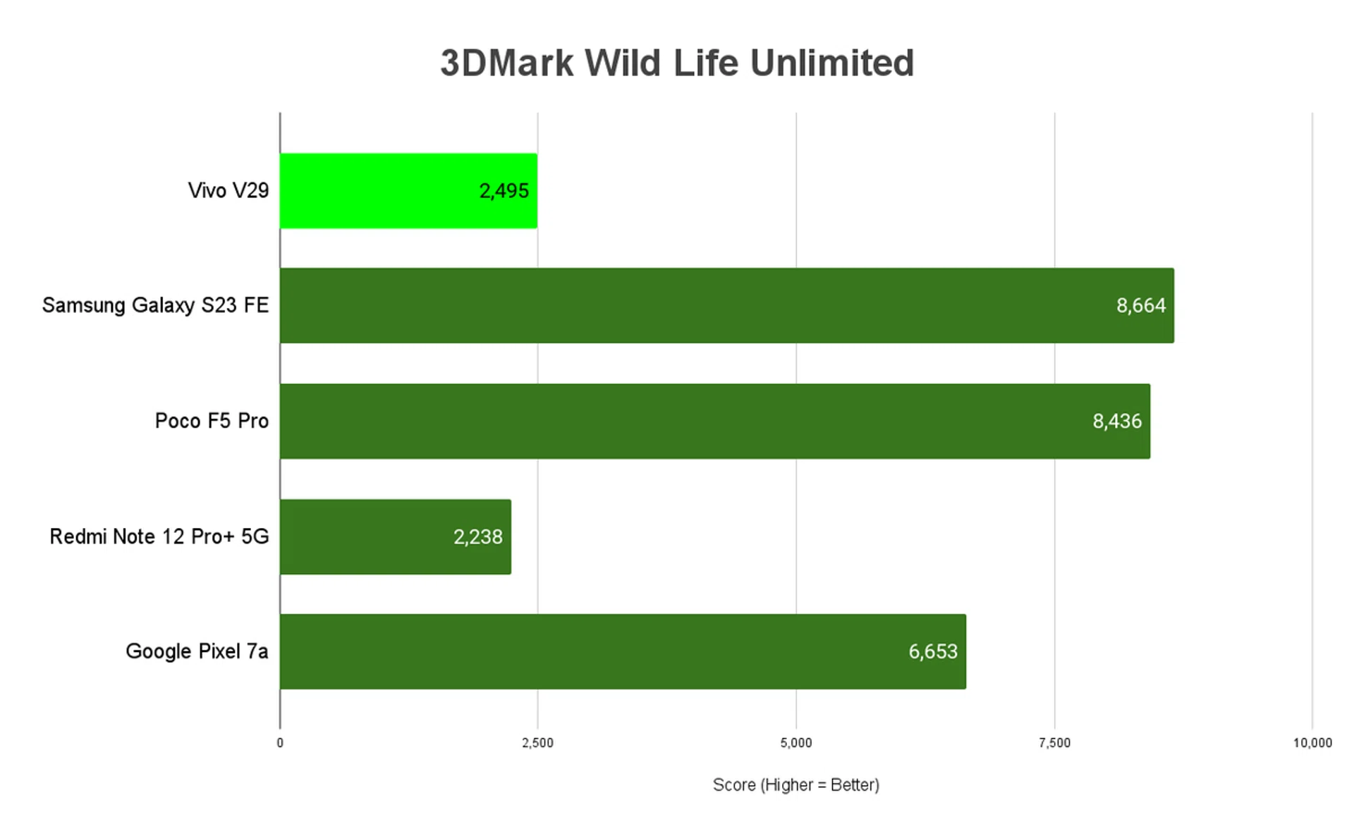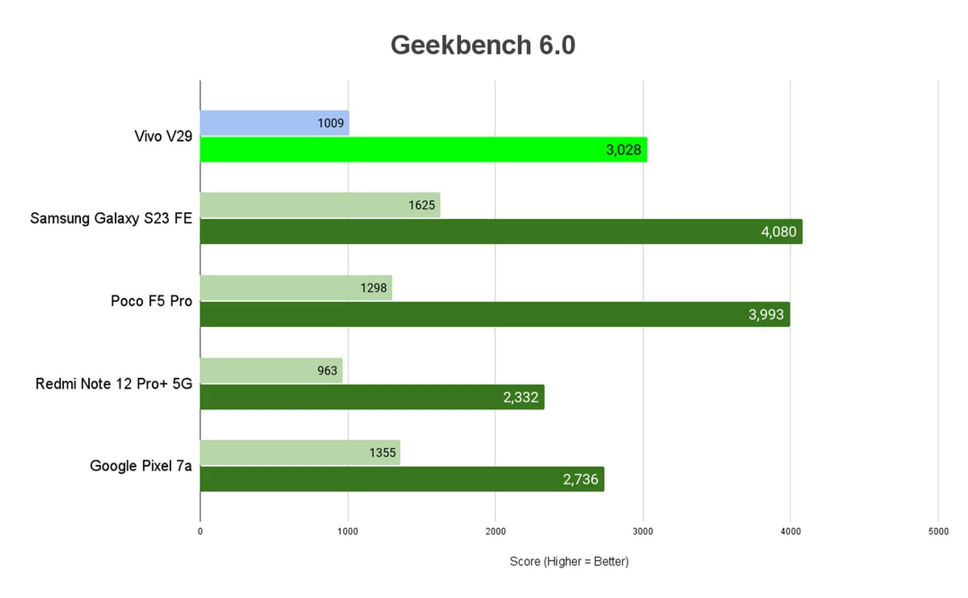 Why Vivo would use a 2021 chipset for an October 2023 handset is anyone’s guess, but you must remember that phones around the S$649 mark (Vivo V29’s official retail price) can come with higher-powered chipsets. From our mid-range phone buying guide alone, you already have the Poco F5 Pro with an old flagship processor at S$100 less, a flagship-grade AI processor on the Pixel 7a at a similar price point and even the Redmi Note 12 Pro+’s MediaTek Dimensity 1080 that trades out power for battery uptime. Outside of our buying guide is the Samsung Galaxy A54 at just S$588. No matter how you cut it, Vivo’s decision to use a non-flagship chipset that’s older than its competition makes it a tough fight for the Vivo V29. The benchmarks say as much, too.