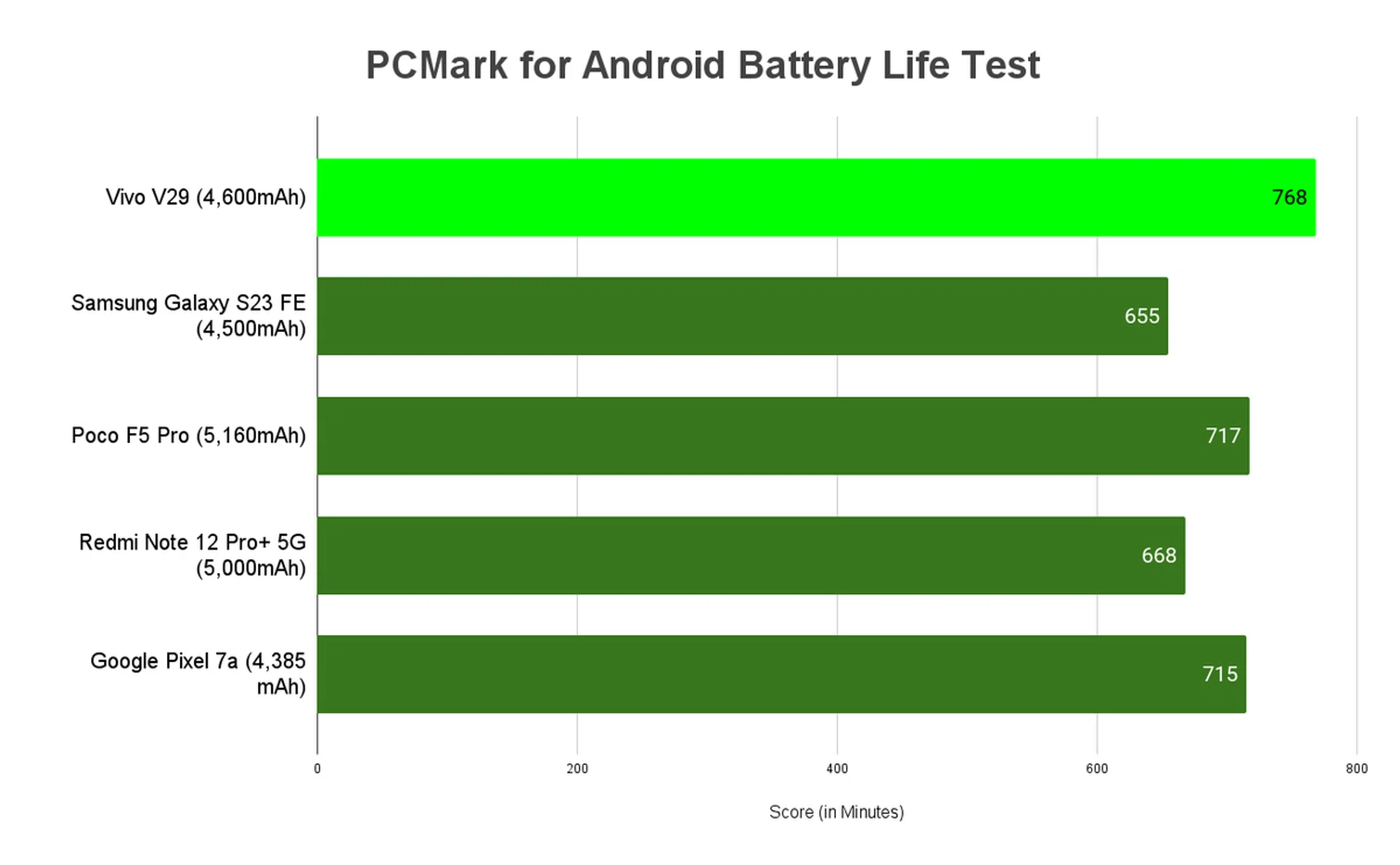 At 4,600mAh, the Vivo V29 pulls in an impressive 12 hours 48 minutes of battery uptime. We attribute it to its low power draw (as seen in the Benchmarks section) despite having a display above 1080p.