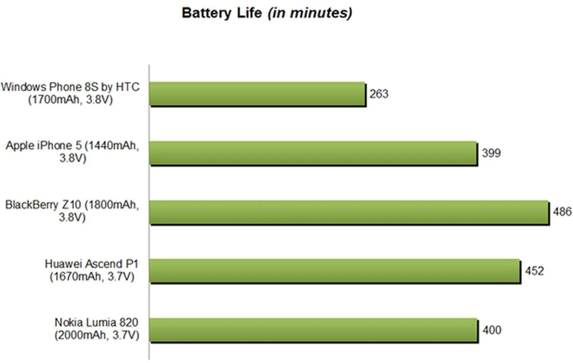 Device | Windows Phone 8S by HTC | Apple iPhone 5 | BlackBerry Z10 | Huawei Ascend P1 | Nokia Lumia 820 |