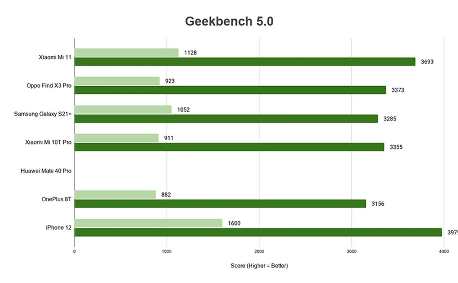 Note: The Geekbench 5 benchmark could not run on Huawei Mate 40 Pro.