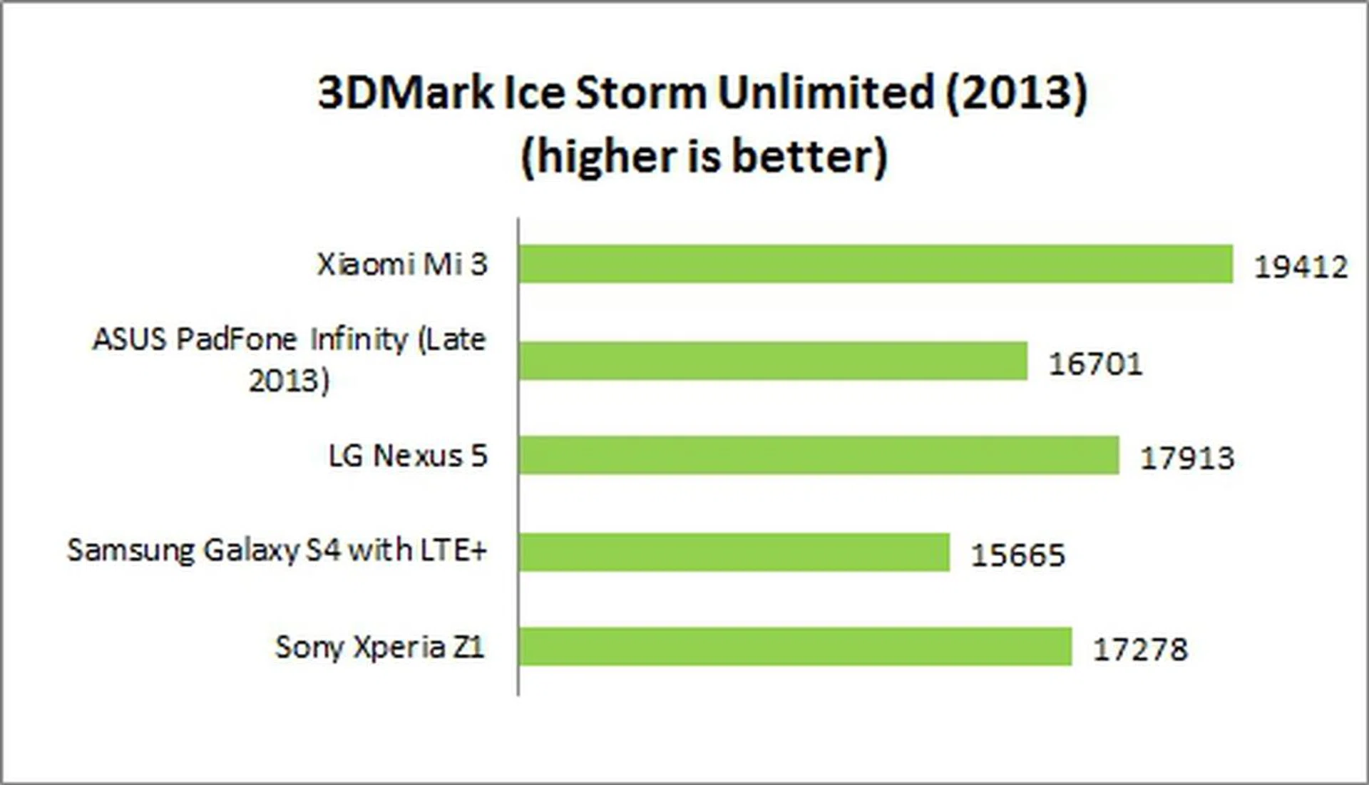 Without other factors affecting the outcome, the Mi 3 emerged top in the 3DMark Ice Storm Unlimited benchmark which is followed closely by the Samsung Galaxy S4 with LTE+.