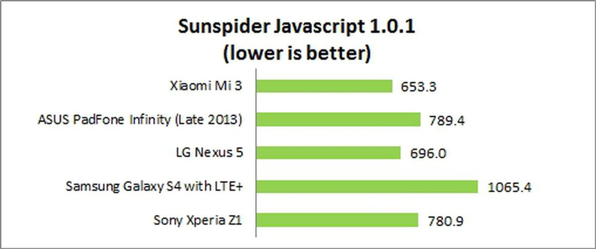 The Mi 3 clinched another victory over its peers in the SunSpider Javascript 1.0.1 benchmark. In fact, the Mi 3 replaced the Nexus 5 with the best performance of any Android device to-date.