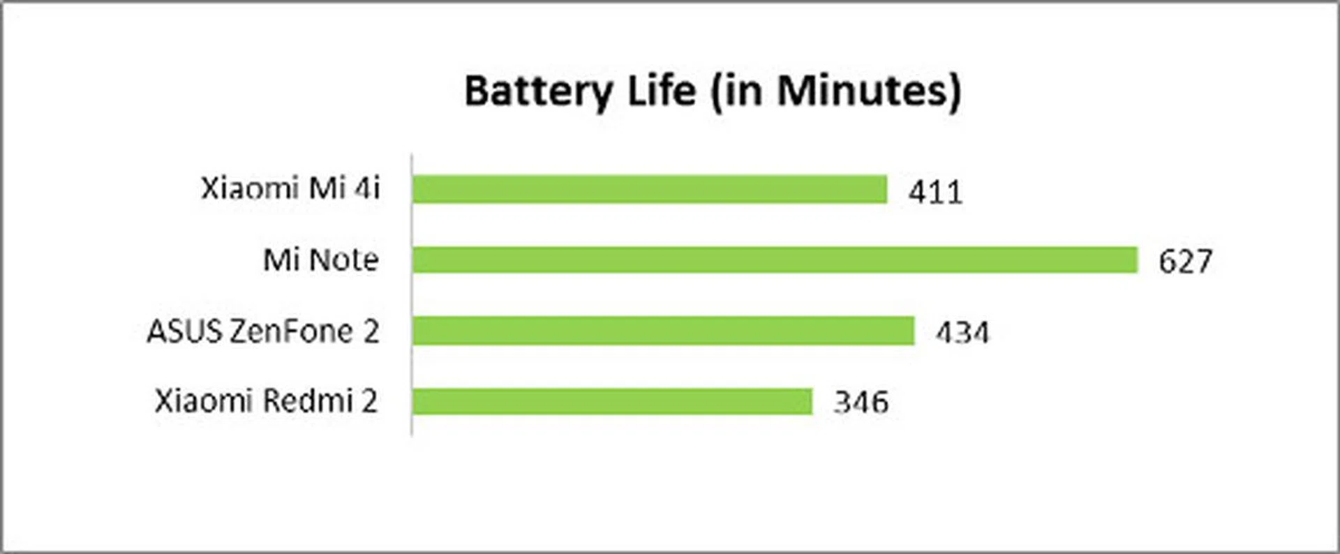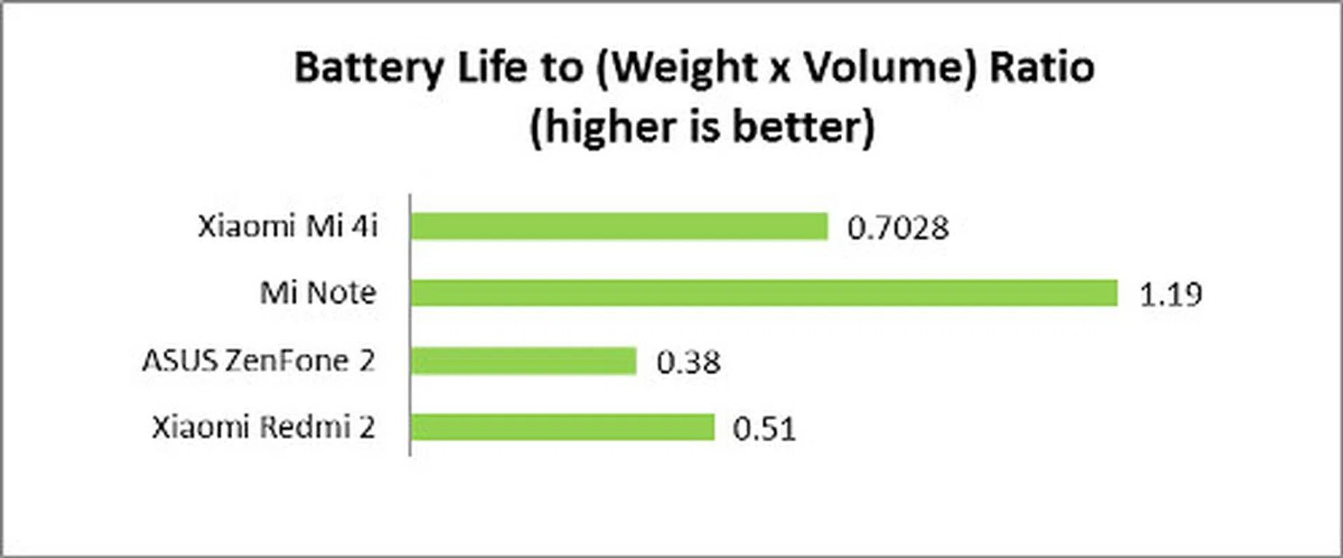 We measure the portability of a device by calculating its battery life to (weight x volume) ratio. As the second thinnest phone among the competition and with decent battery life, the Mi 4i does pretty well here.