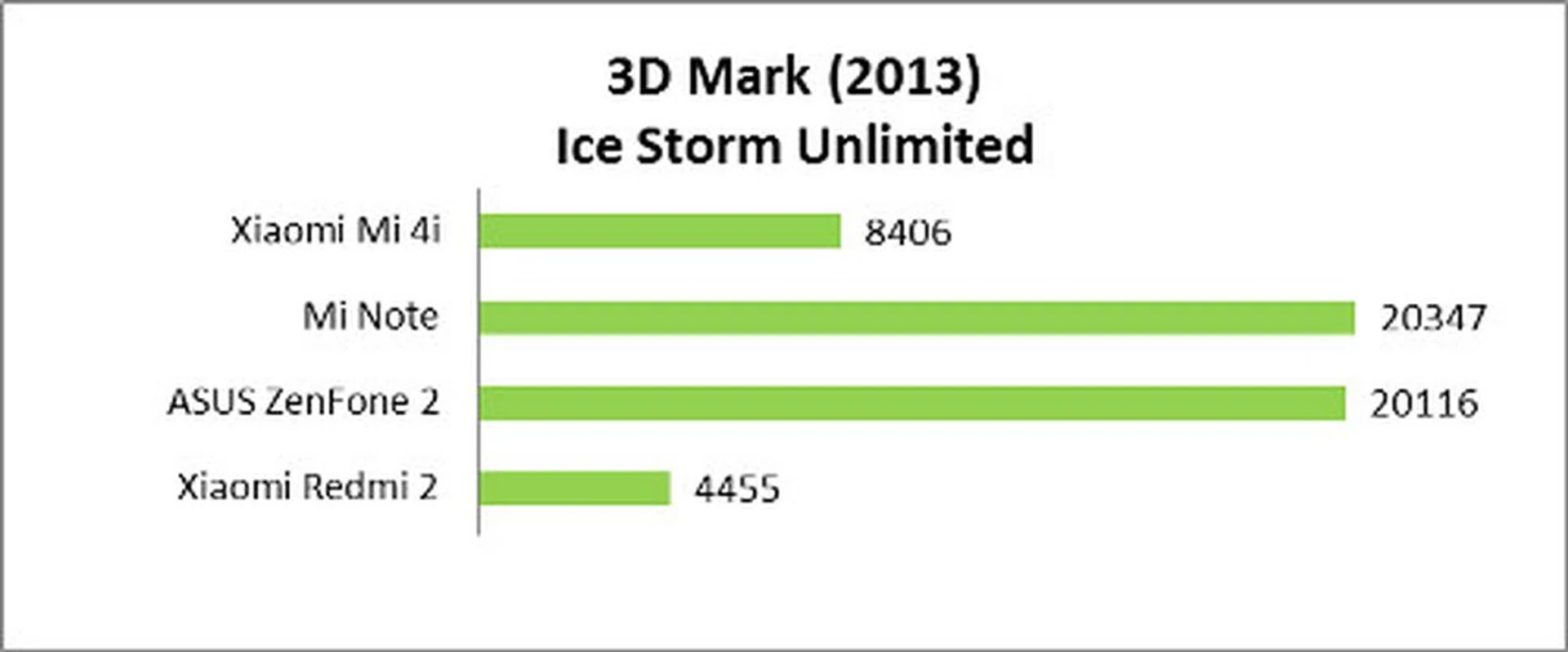 The Mi 4i didn’t perform as well as we thought even though we used the Performance mode, as its Adreno 405 GPU couldn't keep up with either the Mi Note's Adreno 330 GPU or the ZenFone 2's PowerVR G6430 GPU.