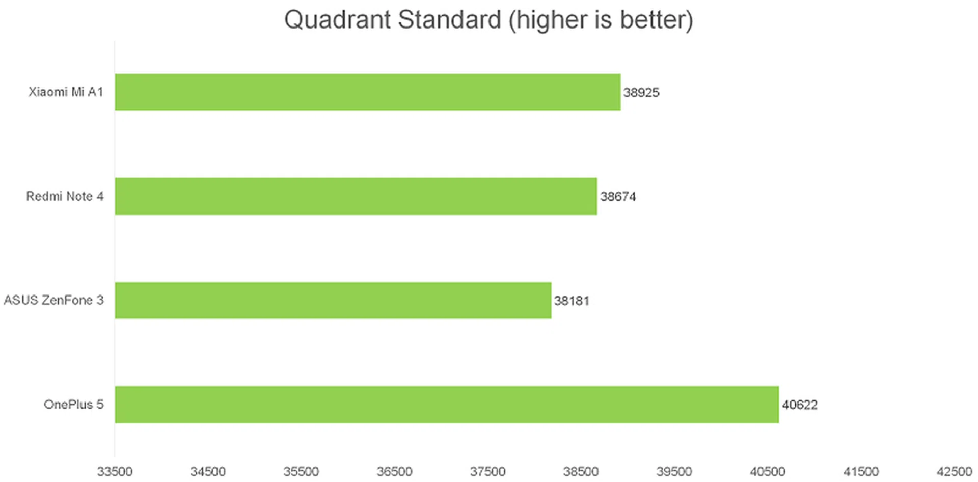 Quadrant is an Android benchmark that evaluates a device's CPU, memory, I/O and 3D graphics performances. Again, the Mi A1 showed about the same performance as the Redmi Note 4, however it wasn't significantly worse than the OnePlus 5.