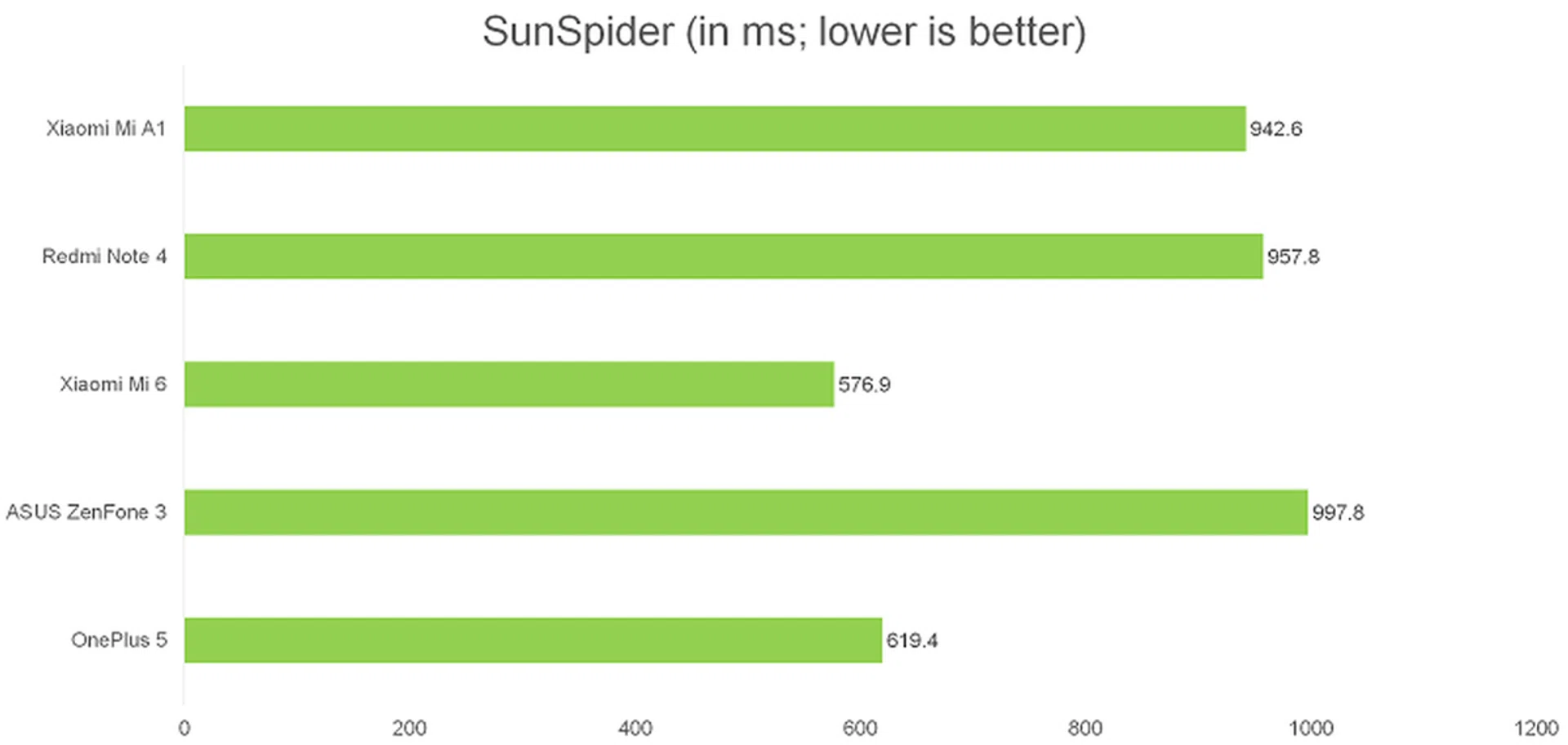 As expected, the Mi A1 performed about as well as the Redmi Note 4 and ASUS ZenFone 3, both of which run on the same Snapdragon 625 processor. For what it's worth, I couldn't tell any difference in actual real world browsing performance between the A1 and the Mi 6.