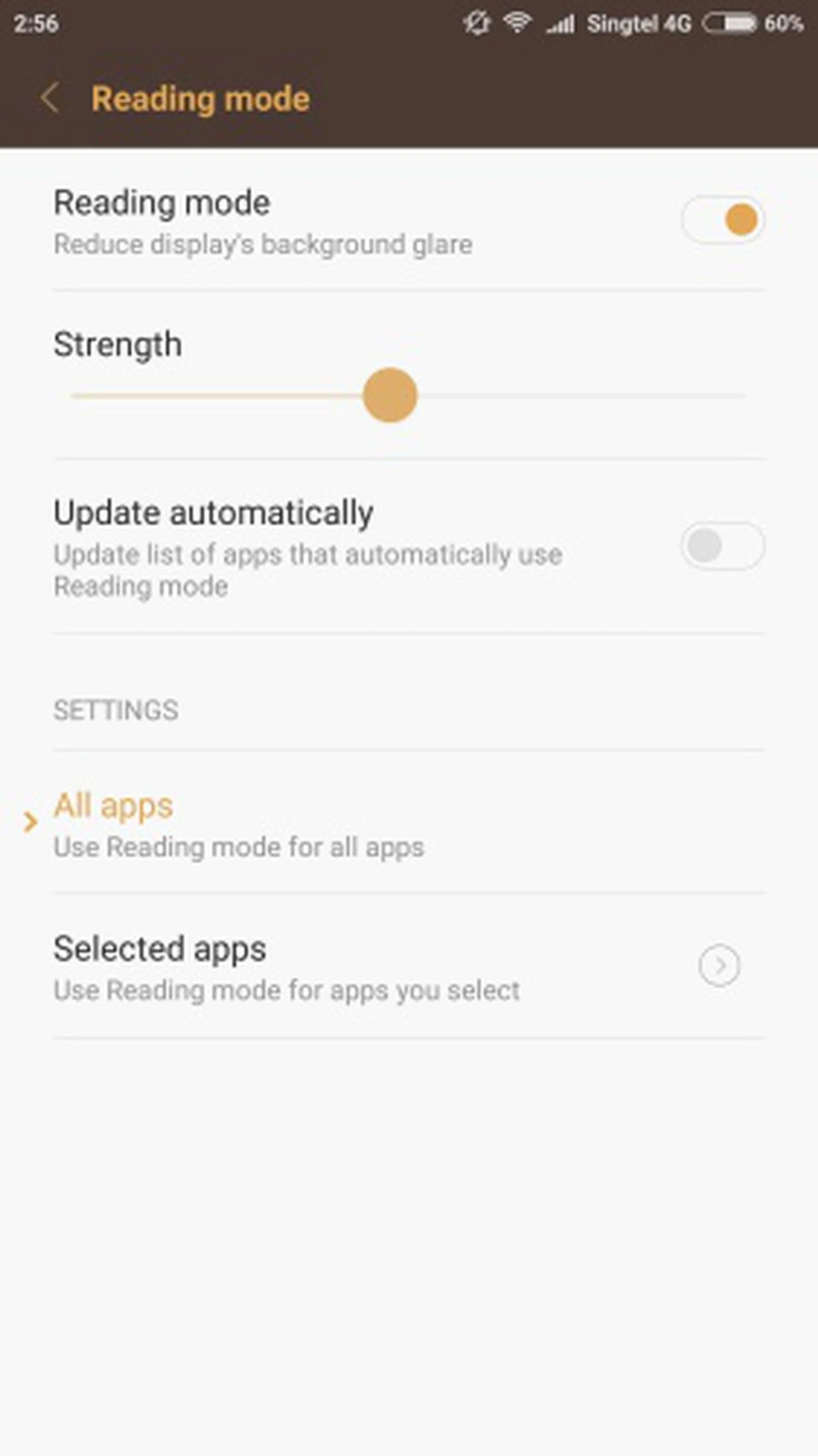 Accessed via Settings > Display > Reading mode, this feature essentially reduces the display's background glare to minimize eye strain. You can adjust the strength of the feature via a scroll bar or pre-select apps to use reading mode. Reading mode has to be enabled manually, unlike Night Shift where you can set a schedule for it to be activated and deactivated.