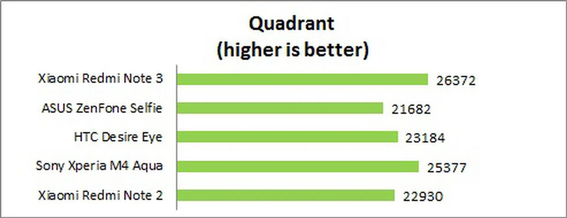 Quadrant evaluates a device's CPU, memory, I/O, and 3D graphics performance. The Snapdragon 650 processor of the Redmi Note 3 clearly took the lead in the Quadrant benchmark, even besting its Helio X10 octa-core counterpart in the Redmi Note 2.