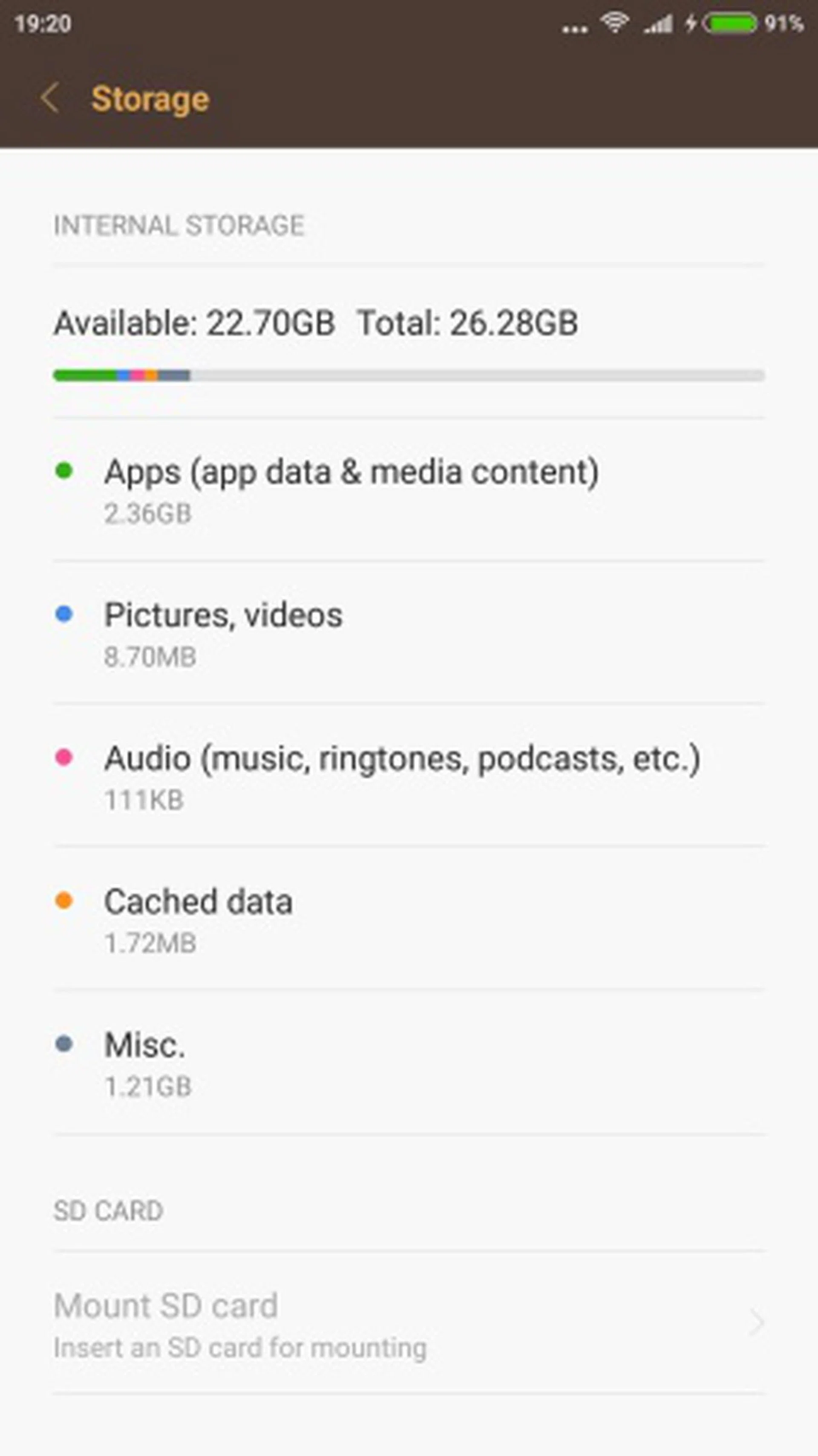 After updating all the preloaded apps, the Redmi Note 3 comes with about 22.70GB of available storage space. The model sold in Singapore comes with 32GB onboard storage space, which you can increase up to 32GB via the SIM and memory card slot.