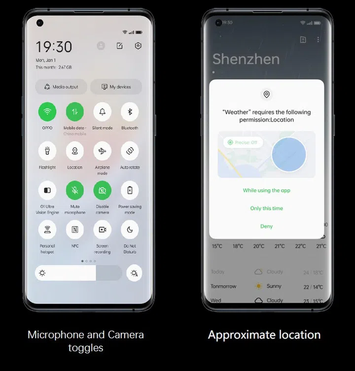 ColorOS 12 users get a Privacy Dashboard that summarises all data and feature permissions of apps, on top of Android 12’s microphone and camera indicators when these two functions are active.