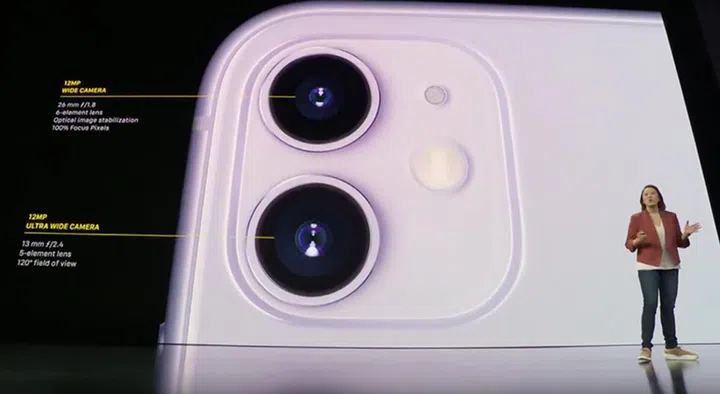The dual-camera system comprises 12MP ultra-wide and wide cameras, both featuring the same specifications as the ones on the iPhone 11 Pro and Pro Max. This means an f/2.4 aperture and 120° field of view on the ultra-wide angle shooter and an f/1.8 aperture on the wide camera. The main wide-angle camera also offers optical image stabilisation. The main difference compared to the flagship models is the lack of the 2x zoom telephoto lens.