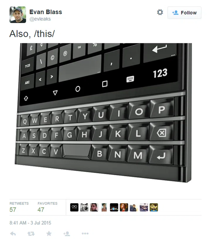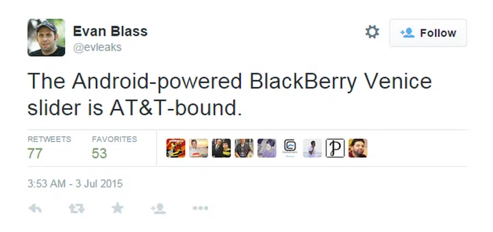 Rumors of an Android-powered Blackberry device have been circulating for a while now and today Evan Blass, aka evleaks, posted a picture on Twitter that he claims is "the Android-powered BlackBerry Venice slider." More details inside.