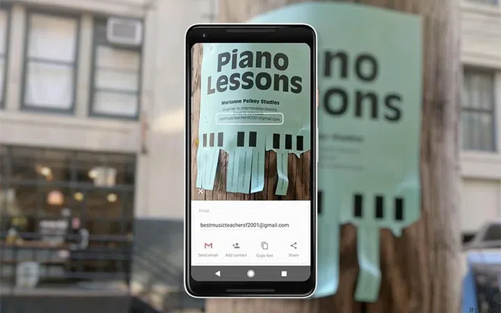 Google Lens can transcribe email addresses and phone numbers for you to use: