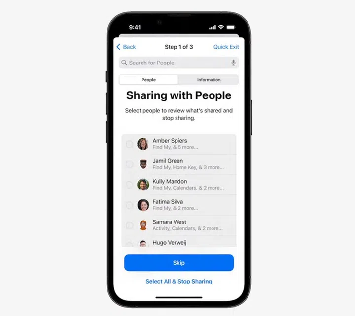 Safety Check is a new privacy tool for users whose personal safety is at risk from domestic or intimate partner violence. The tool allows users to quickly remove all access they’ve granted to others by revoking permissions and shared data. It also signs the victim out of iCloud on all other devices that might be in the abuser’s hands.