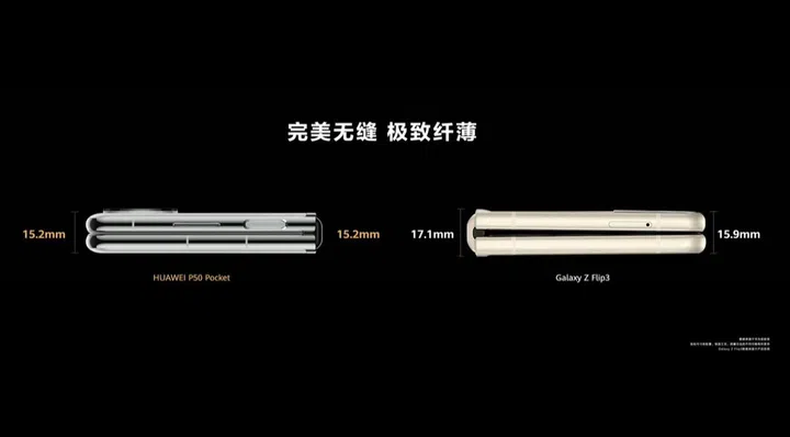 At the P50 Pocket’s livestream event, Huawei said that the P50 Pocket uses a new and improved Multi-Dimensional Hinge and Multi-Dimensional Lifting design that leaves ‘zero gap’. Both ends of the device are exactly 15.2mm in thickness when folded. Huawei also said the steel hinge is ‘more solid and reliable’ than its previous hinge technology, with 62% better impact resistance and 33% better extrusion/crushing resistance.