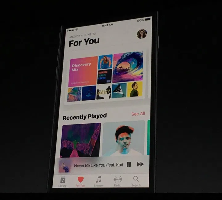 The Music app in iOS 10 went for a complete makeover, with heavy focus on the user's library, the album artwork for your tunes, and an overhaul to its general design language. Songs now come with lyrics implemented under the track scrubbing bar, so there's no need to manually stuff lyrics in the description box like its 2008.