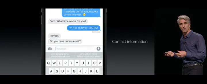 With the implementation of LSTM (long short term memory) deep learning protocols into Quicktype, iOS 10 now offers better predictive texting. One of the examples given at WWDC 2016 was the ability for Siri to pre-fill text based on context, such as contact details of a colleague when a sender requests for it.