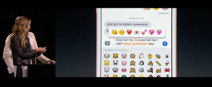 iMessage in iOS 10 goes beyond text-only communication. You get rich links with preview image from pasted URLs. Songs and videos can be played directly from the message itself. Camera and photos are more intuitive, with implementation not unlike the Facebook Messenger mobile app. Emojis can be three times bigger, with predictive emojis available. iMessages also welcomes hand-written messages, and new message effects that add more impact to your text puts PowerPoint's transition effects to shame.