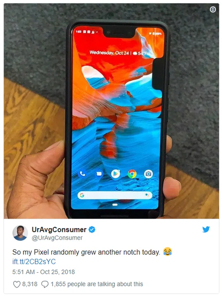 What's worse than a notch in your display? How about two notches. Earlier this week, a number of Pixel users reported a new bug that randomly places a second virtual notch on the side of the Pixel 3 XL's display.