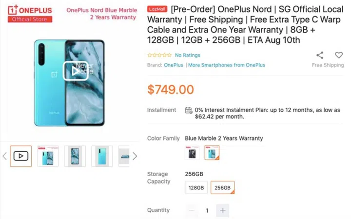 According to the product listing on the Lazada Official Store, the OnePlus Nord comes with free extra USB Type-C Warp cable and an extra one year of warranty if you pre-order before 7 Aug. It is available in two configurations at the following prices: