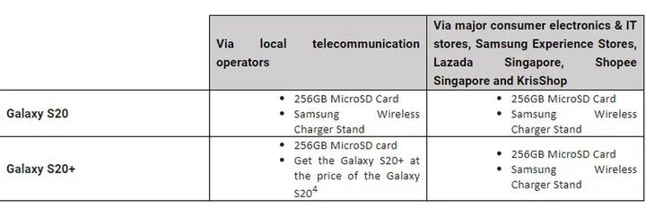 The general retail freebie bundle of a 256GB microSD card and a wireless charger stand is valued at S$227. While some chatter in our forums mention this being a better freebie set than the pre-order offer that bundled the new wireless Galaxy Buds+, this probably boils down to user preferences. The Galaxy Buds+ are valued at S$268, so the pre-order folks did get a higher-priced product for free. However, we can also see where our forum users are coming from as the microSD card and wireless charger stand are both immediate essentials that have higher usage value (especially since the phones have limited built-in storage) even though the official value is lower.