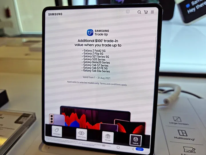 Customers who purchase either Galaxy Z handsets can trade-in an 'old eligible device' at Samsung Experience Stores or via its online Trade Up portal to receive an additional $100 trade-in value on top of its original trade-in amount. Trade Up starts from 2 September 2021 onwards.