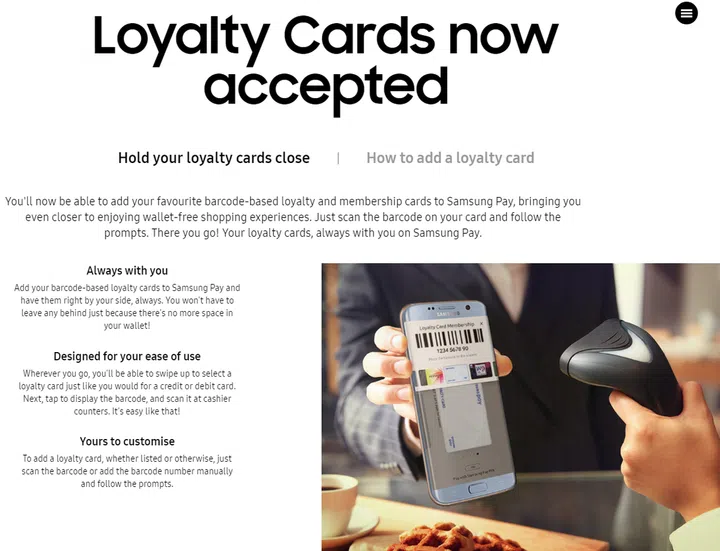 The mobile payment service by Samsung now supports brand loyalty barcode cards and EZ-Link SIM cards, alongside its launch on more Samsung devices.